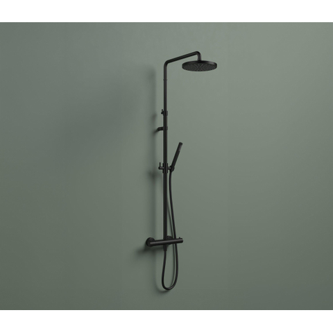 Hotbath Ace Ensemble de douche de tête - thermostatique - pomme de douche 21cm - douchette barre - flexible de douche lisse - PVD noir brossé