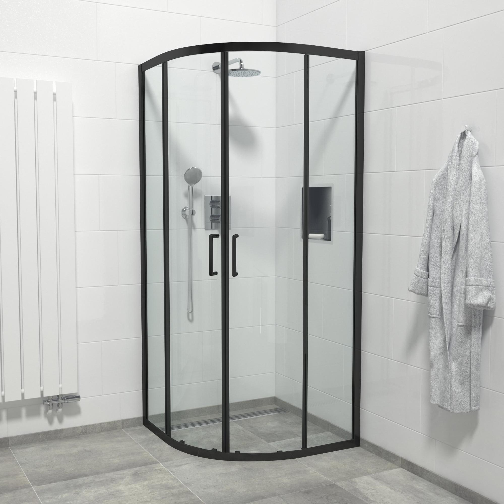 FugaFlow Efficiente Vetro Cabine de douche - quart de rond - 90x90x195cm - verre clair - anti-calcaire - noir mat