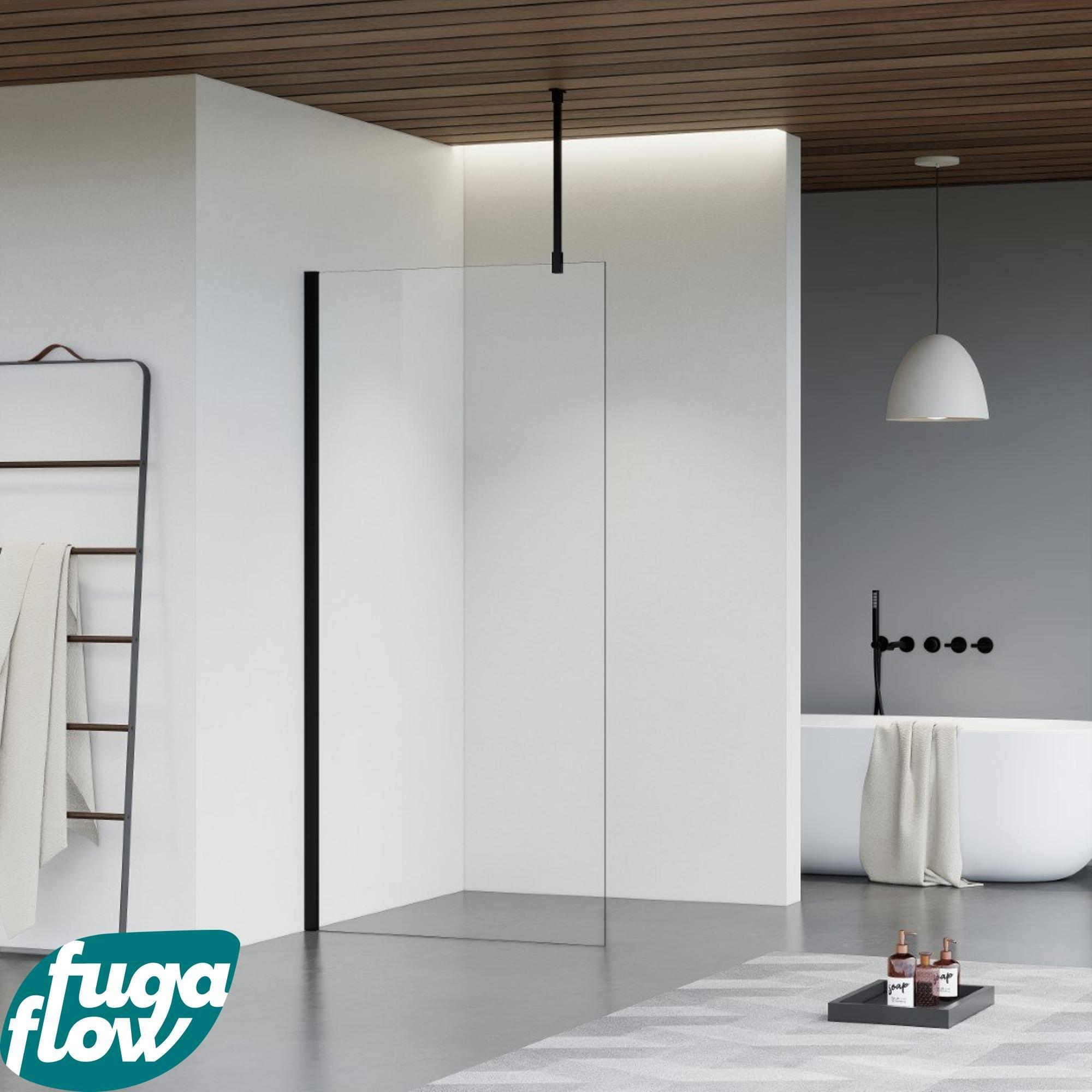 FugaFlow Eccelente Vetro douche à l'italienne - 100x200cm - verre clair - bras plafond - noir mat