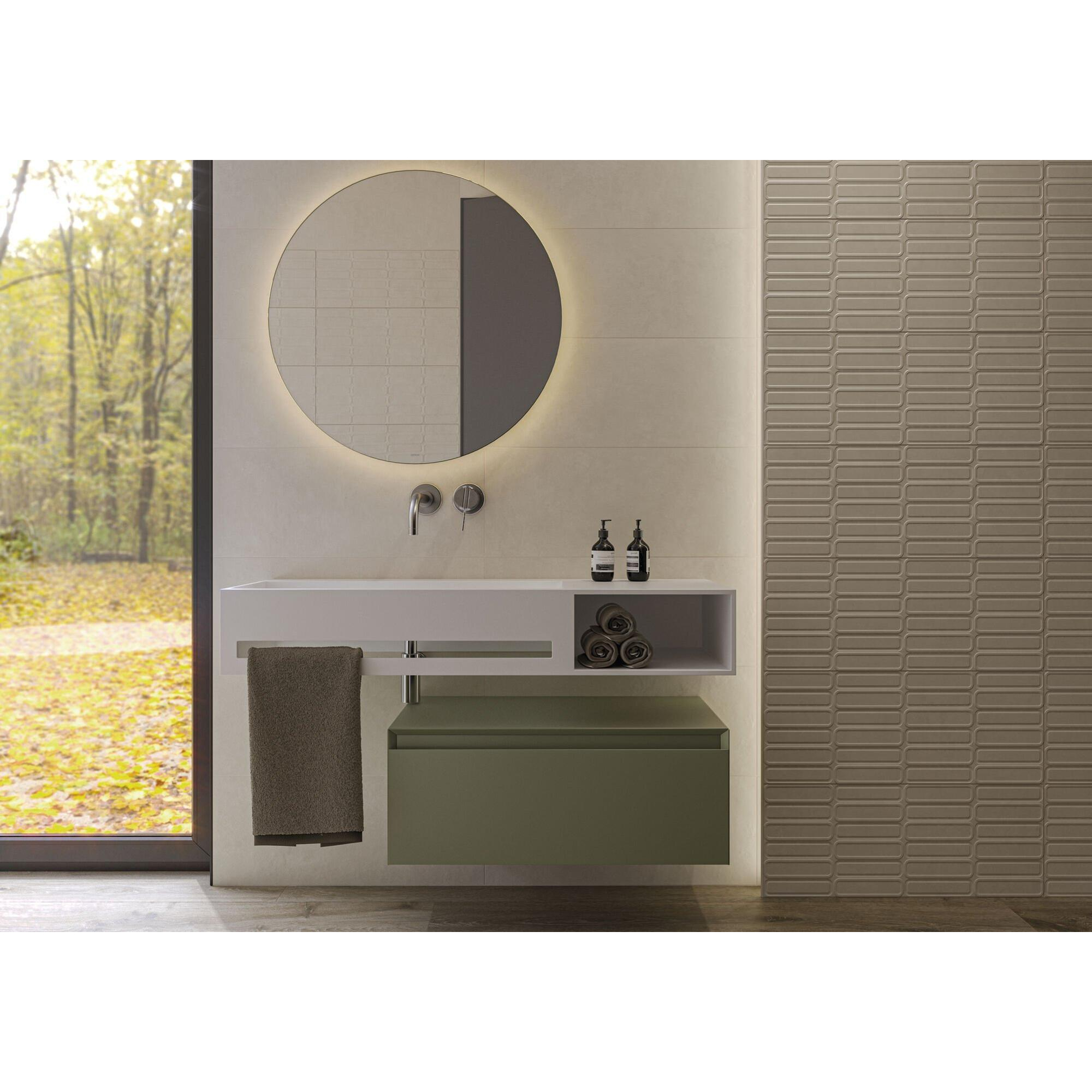 La couleur ivory mate de ce carreau mural se prête parfaitement aux salles de bains et aux toilettes dans lesquelles vous souhaitez créer une atmosphère calme et lumineuse. La teinte proche du crème s’inscrit dans la palette des beiges et se combine donc aisément avec le bois, les accents noirs, les produits sanitaires blancs ou encore des nuances comme le sable et le taupe. La surface mate crée un aspect moderne et subtil sans brillance, ce qui limite les reflets et adoucit l’apparence de la pièce. C’est particulièrement appréciable dans les petites salles de bains ou dans les pièces très lumineuses, où un fini très brillant peut parfois paraître trop chargé. Ce style convient bien aux salles de bains scandinaves, aux intérieurs minimalistes, mais aussi à une ambiance chaleureuse et champêtre. Grâce à la couleur neutre, vous pouvez en outre changer facilement d’accessoires, de serviettes et de décoration sans que la base ne jure avec l’ensemble.