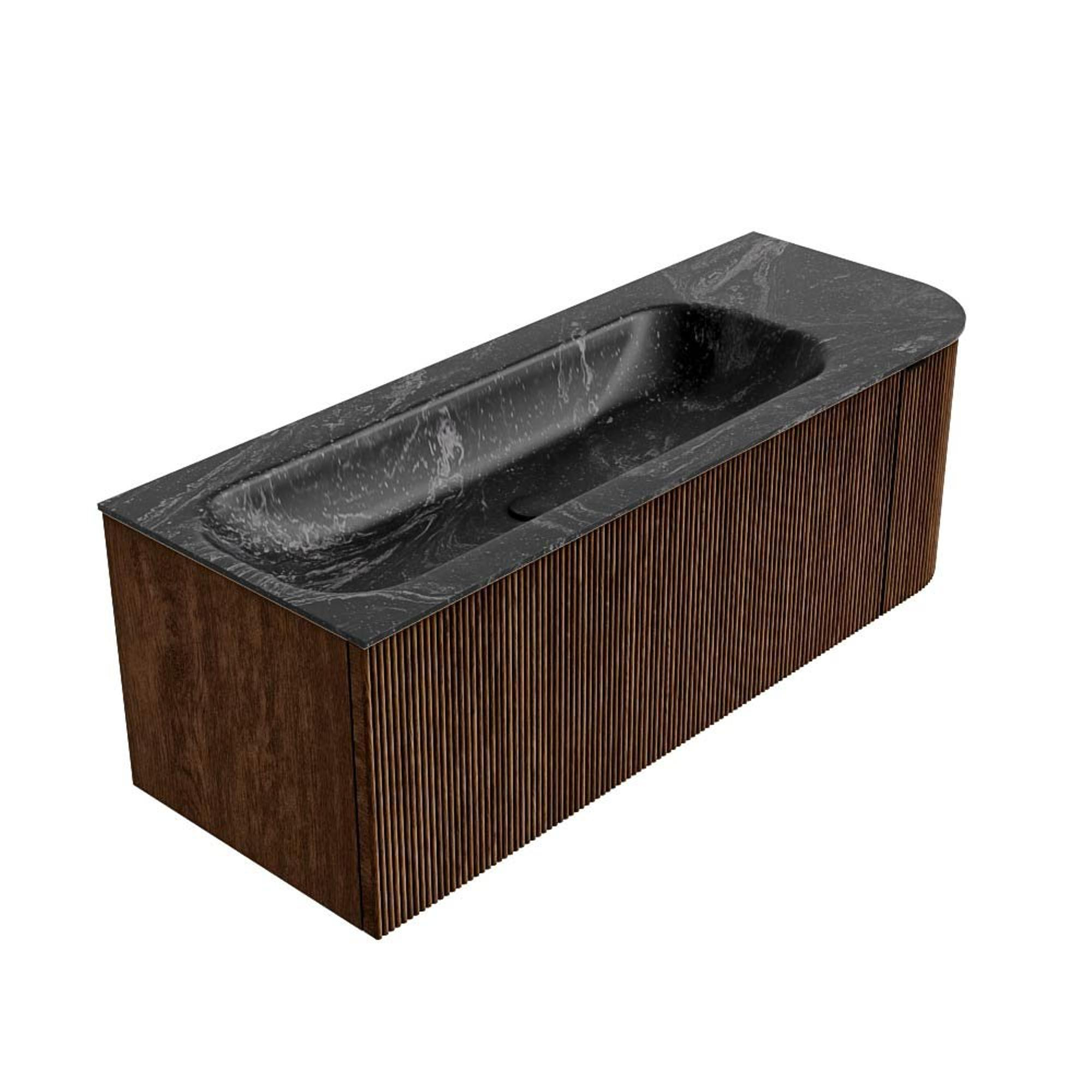MONDIAZ KURVE-DLUX 125cm Meuble salle de bain avec module 25 D - couleur Walnut - 1 tiroir - 1 porte - vasque BIG MEDIUM gauche - 1 trou de robinet - couleur Lava