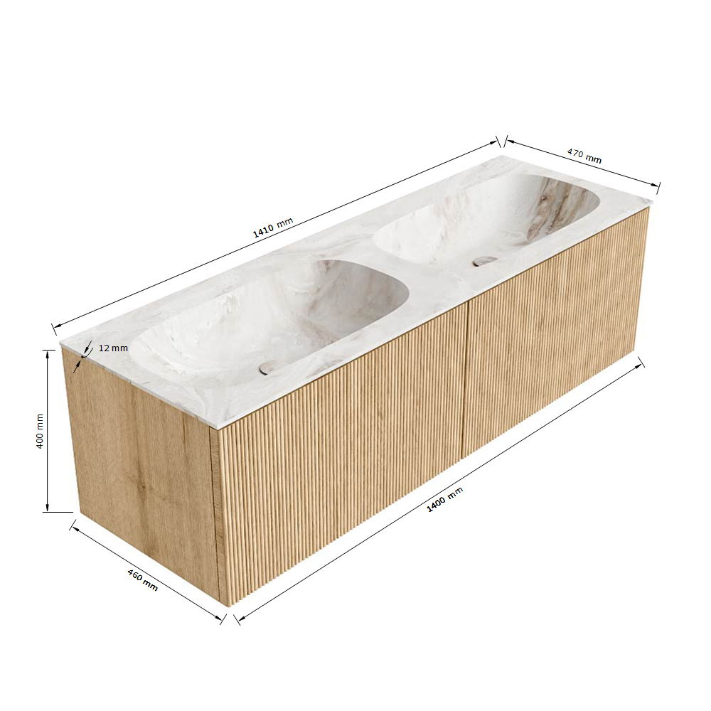 MONDIAZ KURVE-DLUX 140cm Meuble salle de bain - couleur Walnut - 2 tiroirs - vasque STOR SMALL double - 2 trous de robinet - couleur Frappe