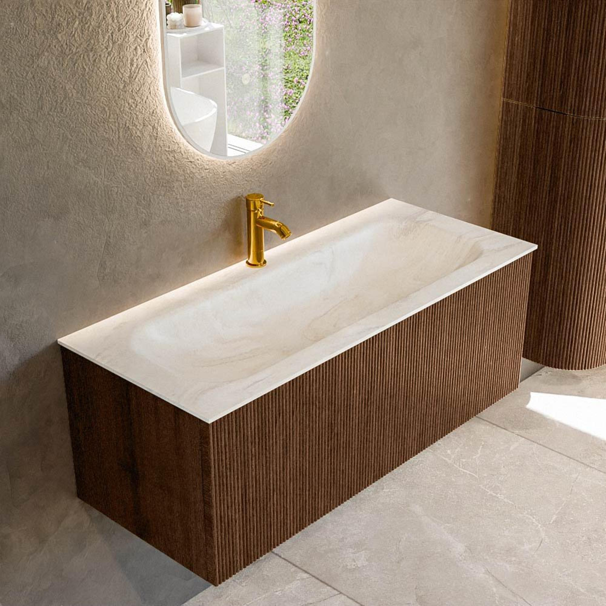MONDIAZ KURVE-DLUX 110cm Meuble salle de bain - couleur Walnut - 1 tiroir - vasque BIG MEDIUM centre - 1 trou de robinet - couleur Ostra