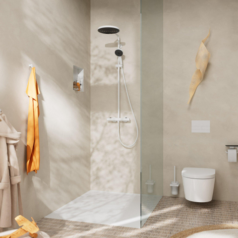 Le design intemporel en blanc mat donne à votre salle de bains un aspect frais et moderne qui ne se démode jamais. Les lignes épurées et le caractère minimaliste créent un effet d'espace, même les petites salles de bains paraissent plus grandes et plus lumineuses. Grâce à la finition de haute qualité, la surface reste belle longtemps et facile à entretenir. Ce système de douche est un véritable point fort qui s'harmonise facilement avec différents styles d'intérieur. Vous créez ainsi une atmosphère harmonieuse dans laquelle vous commencez et terminez chaque jour avec plaisir.