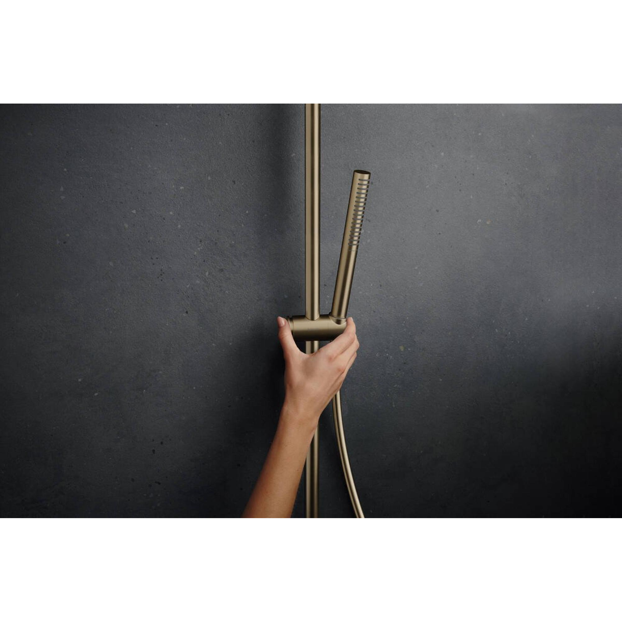 Entrez sous cet ensemble de douche de tête magnifique et découvrez comment votre salle de bains se transforme en une oasis de calme et de luxe. La combinaison d'une douche de tête généreuse avec une douchette à main élégante offre une expérience de douche polyvalente qui vous chouchoute chaque jour. Grâce au design subtil en bronze brossé, votre salle de bains acquiert une apparence chaleureuse et moderne qui reste intemporelle sans effort. Le caractère minimaliste de ce système vous offre plus d'espace et de tranquillité, tandis que les technologies innovantes assurent un confort optimal et une facilité d'utilisation. Ainsi, vous profitez non seulement d'une douche rafraîchissante, mais aussi d'une pièce maîtresse élégante et fonctionnelle qui complète votre salle de bains.