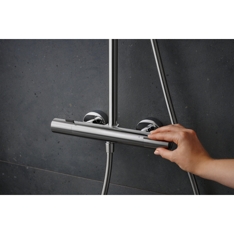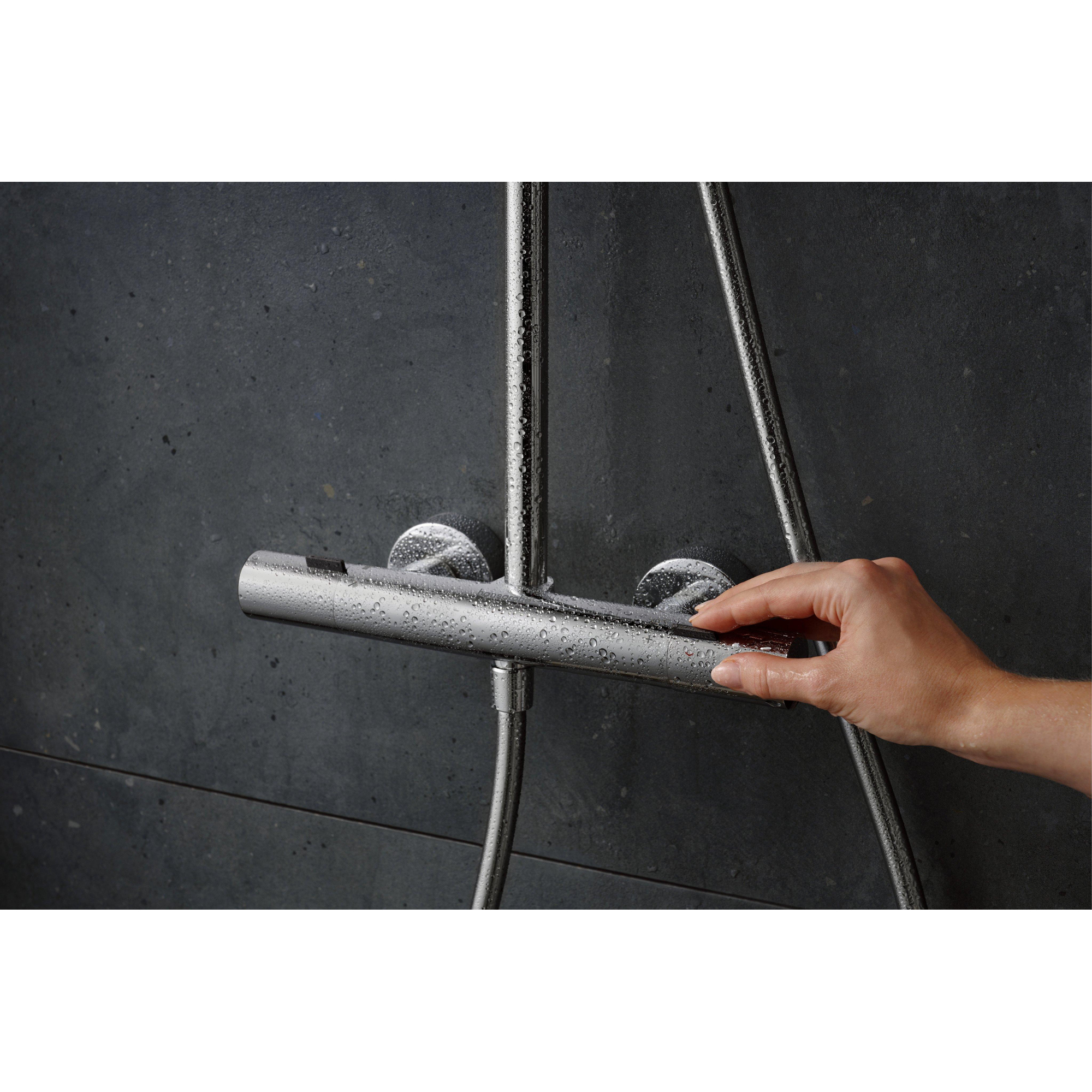 Ce système de douche est équipé d'un mitigeur thermostatique précis qui assure une température d'eau constante et sécurisée, pour ne plus jamais avoir d'eau froide ou trop chaude de façon inattendue. La douchette propose trois types de jets différents que vous pouvez changer d'une simple pression sur le bouton Select, pour toujours choisir le jet d'eau adapté à vos préférences. Le support de douche réglable en continu se manipule facilement d'une seule main, ce qui augmente la facilité d'utilisation. De plus, un kit de fixation spécial empêche que le flexible de douche ne s'emmêle, pour profiter de votre douche sans tracas.