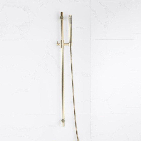Fortifura Calvi ensemble barre de douche avec douchette barre, flexible de douche métallique Laiton brossé PVD (Or)