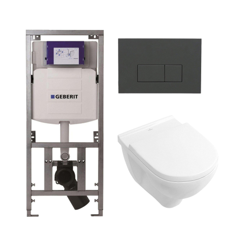 Villeroy & Boch O.novo Ensemble WC - réservoir encastré Geberit - cuvette suspendue à chasse profonde - abattant softclose - plaque de commande anthracite mat - boutons rectangulaires - blanc