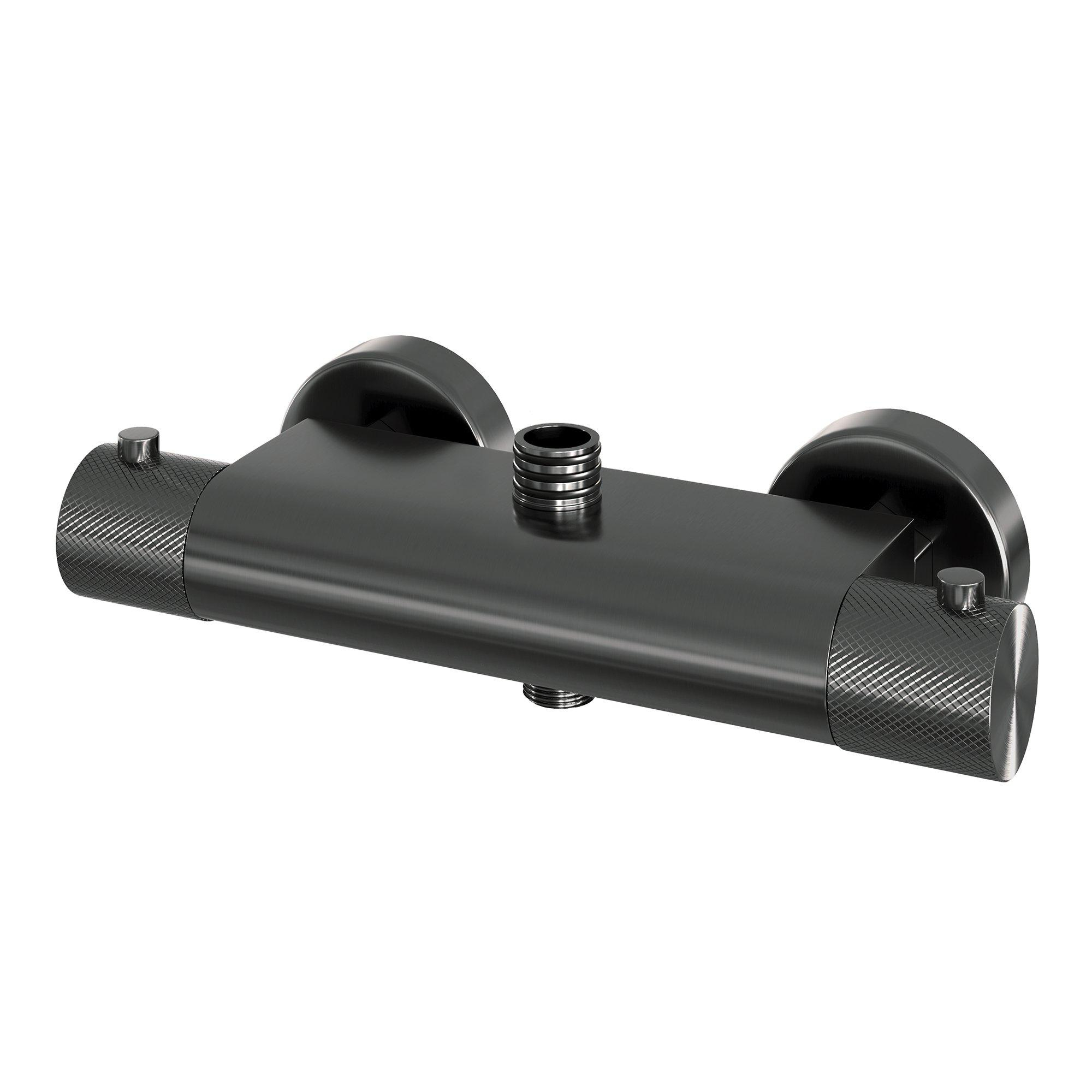 Brauer Gunmetal Carving Douche pluie 20cm thermostatique mural avec douchette rond 1 jet stick flexible 150cm lisse et barre avec curseur Gunmetal brossé PVD