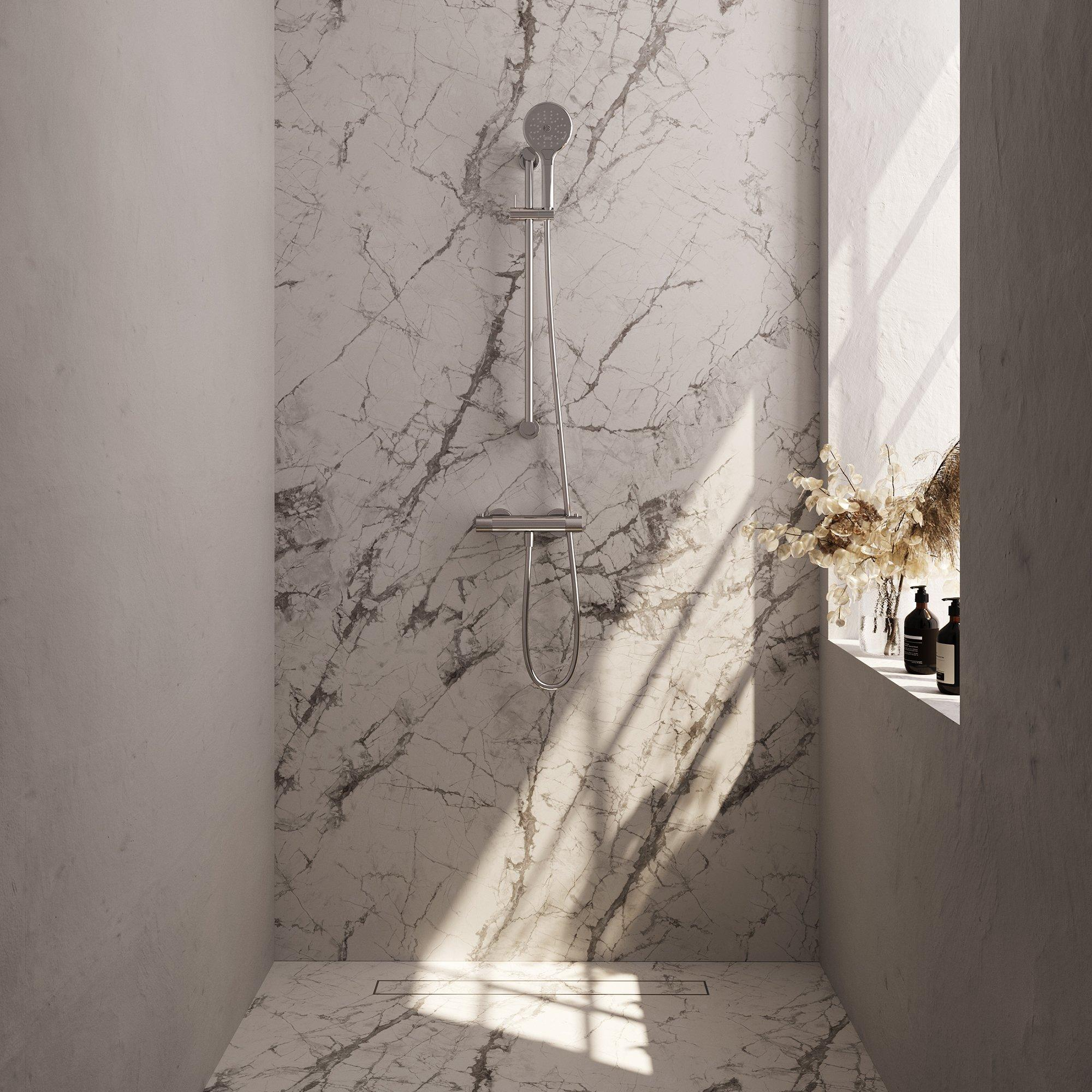 Avec le Robinet de Douche encastré Brauer Chrome Carving, vous profitez d'une expérience de douche confortable et relaxante. La glissière offre flexibilité et adaptabilité, vous permettant de placer la douchette à la hauteur souhaitée sans effort. La douchette ronde à 3 positions assure un jet d'eau agréable qui vous aide à vous détendre et à profiter de votre moment de douche.