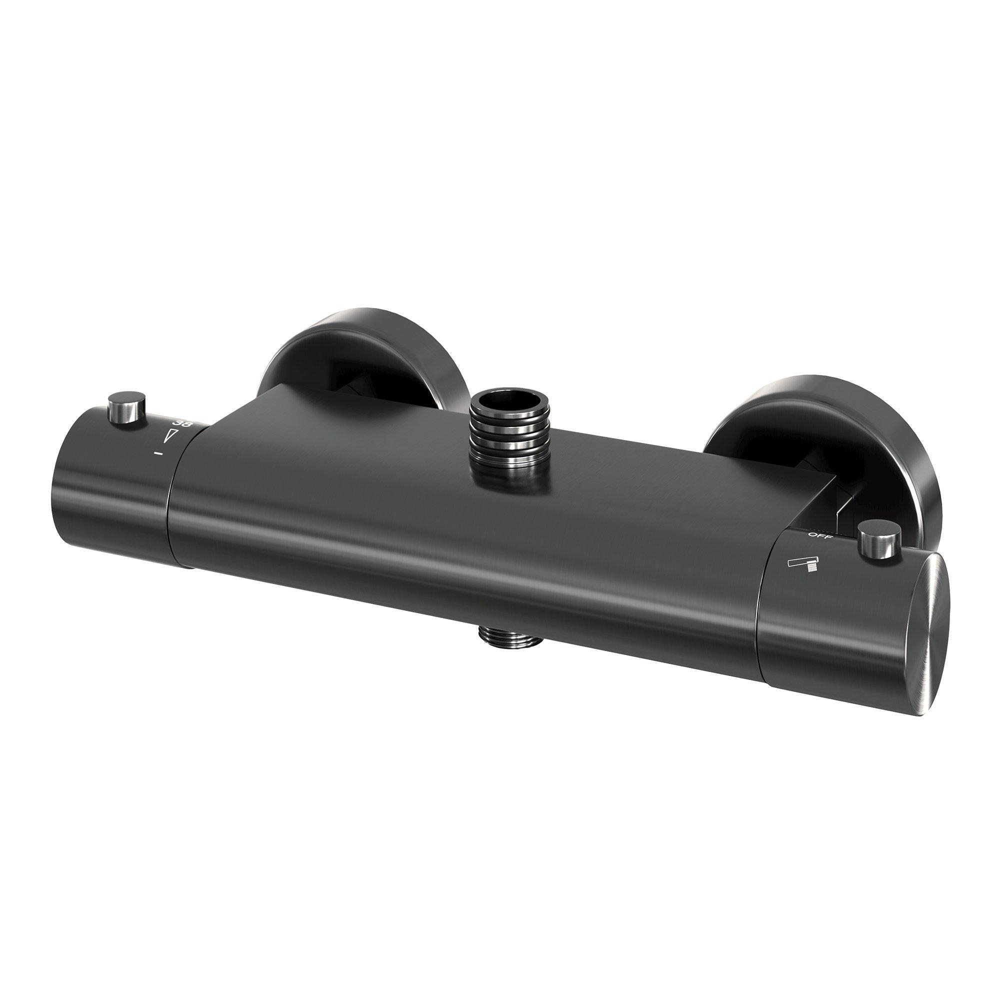 Brauer Gunmetal Edition Ensemble de douche pluie à poser - douche principale 30cm - glissière - douchette ronde 3 positions - boutons lisses - PVD - gunmetal brossé