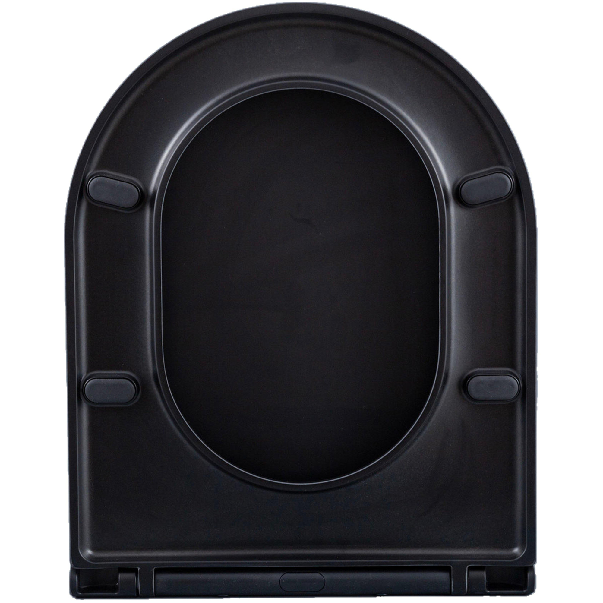 QeramiQ Dely Swirl Ensemble WC - 36.3x51.7cm - réservoir encastré Geberit UP320 - avec cadre Burda - abattant slim - plaque de commande gris clair - boutons ronds - noir mat
