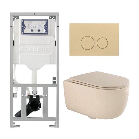 QeramiQ Dely Swirl Ensemble WC - 36.3x51.7cm - réservoir encastré Geberit UP320 - avec cadre Burda - abattant slim - plaque de commande beige - boutons ronds - beige