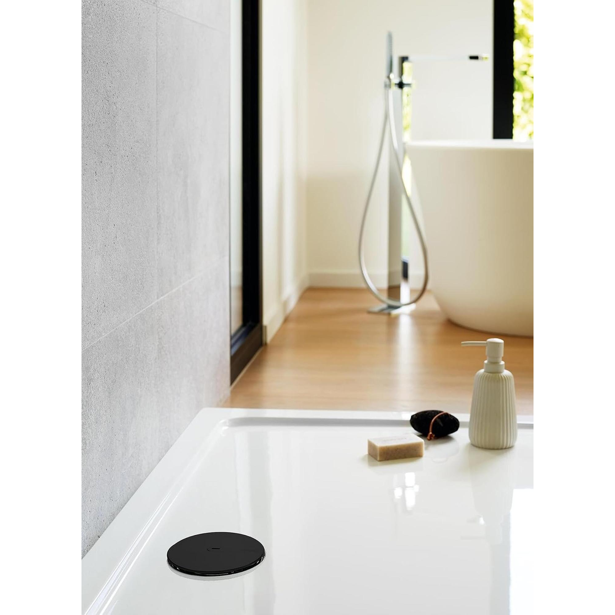 Le couvercle est fabriqué en plastique ABS de haute qualité, un matériau réputé pour sa robustesse, sa stabilité de couleur et sa longue durée de vie. L’ABS résiste bien à une utilisation quotidienne, aux variations de température de l’eau et aux produits de nettoyage usuels dans la salle de bains. Le diamètre d’environ 118 mm est compatible avec la bonde de douche Slim+ correspondante, ce qui vous garantit un ajustement parfait et un maintien stable du cache en place. Cela procure non seulement un sentiment de sécurité, mais évite également le vacillement ou le déplacement pendant la douche. Une solution durable dont vous pourrez profiter pendant de nombreuses années.