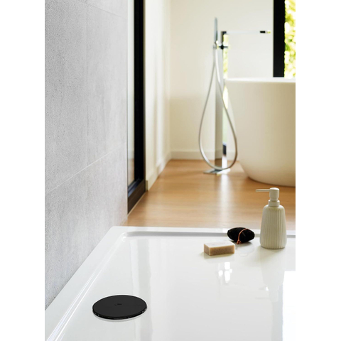 Le design extra plat Slim+ permet au cache de s’aligner parfaitement avec le receveur de douche, ce qui offre non seulement un rendu soigné mais aussi une sensation agréable sous les pieds. La finition noire mate apporte un look luxueux et minimaliste qui s’accorde parfaitement avec les tendances actuelles de la salle de bains, telles que la robinetterie noire et les carreaux aspect béton. Grâce à sa forme ronde et discrète, il trouve parfaitement sa place aussi bien dans une niche compacte que dans une douche à l’italienne spacieuse. Vous donnez ainsi à votre douche, en une seule étape simple, un aspect haut de gamme et uniforme, sans devoir remplacer l’ensemble de la bonde.