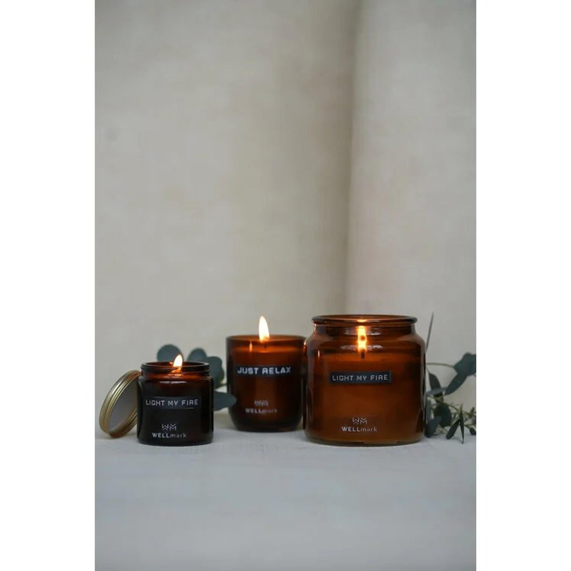 Wellmark Bougie parfumée - 9.5x11cm - cèdre - texte LIGHT MY FIRE