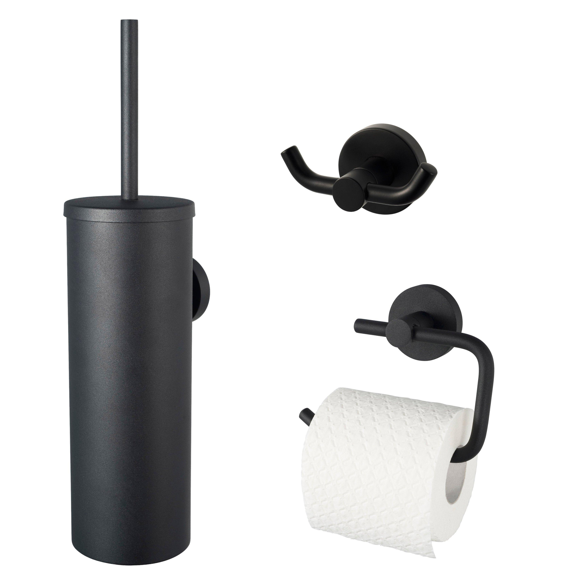 - Ensemble complet 3 pièces avec porte-rouleau de papier toilette, brosse WC et crochet