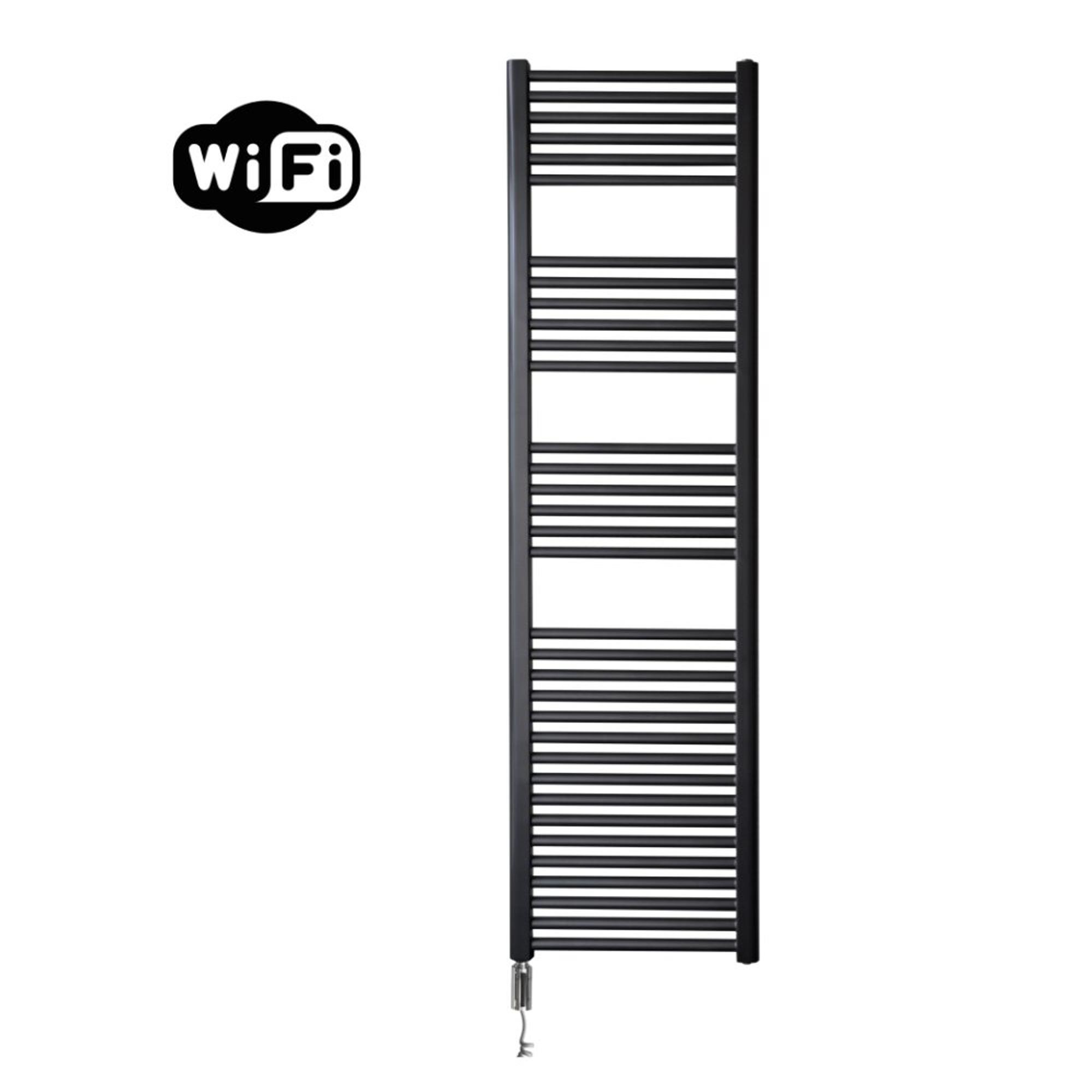 Sanicare HVW Radiateur électrique - 172x45cm - 920W - wifi - thermostat - chrome - en bas à gauche - noir mat