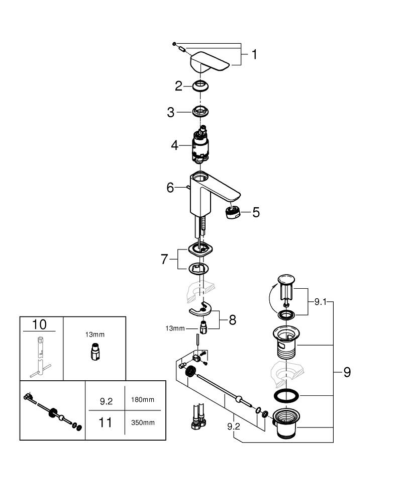 Grohe Euroeco Special Ensemble de robinet mélangeur - bec 34,1 cm - à poser - montage mural - chrome