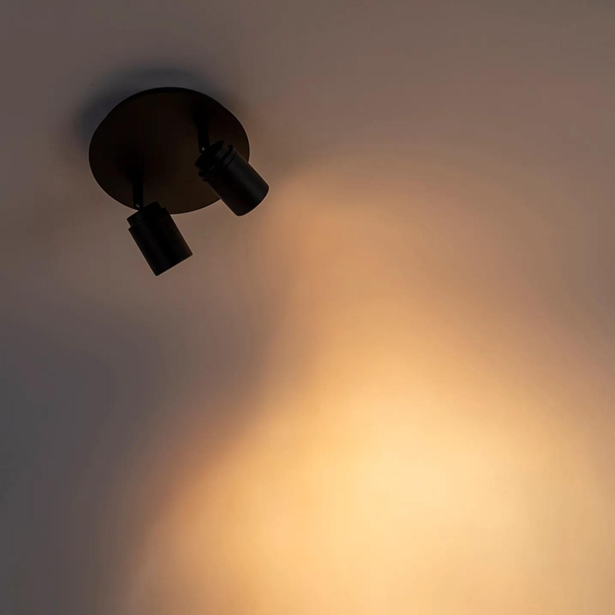 Le plafonnier Ducha de QAZQA, avec ses 2 spots orientables et sa finition en noir mat, est la solution idéale pour un éclairage à la fois pratique et élégant dans les environnements humides, offrant flexibilité et style.