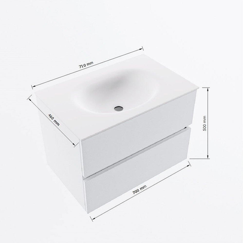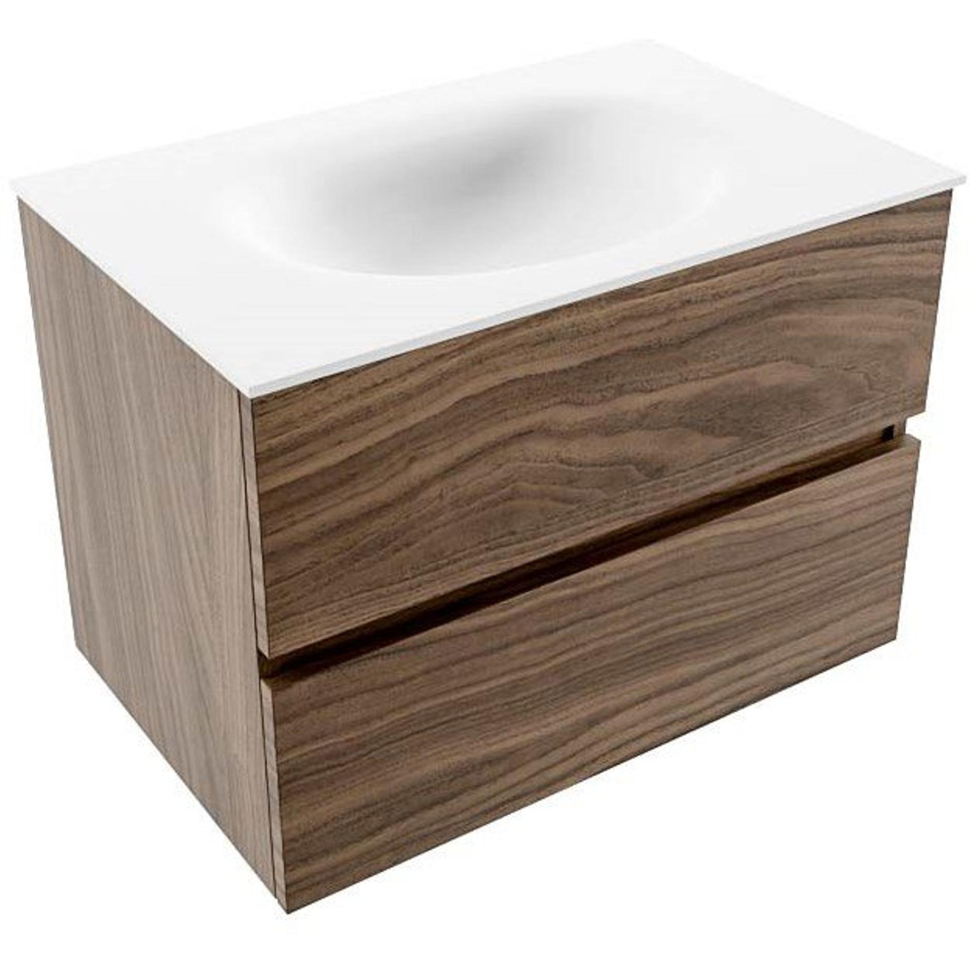 Mondiaz VICA meuble sous lavabo de salle de bains - 70cm - 2 tiroirs - lavabo Moon Talc - sans trou de robinet - Mocha