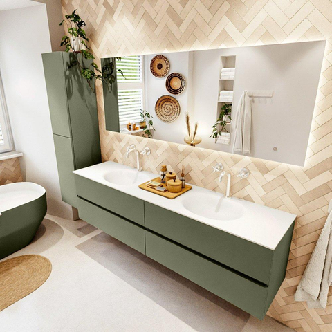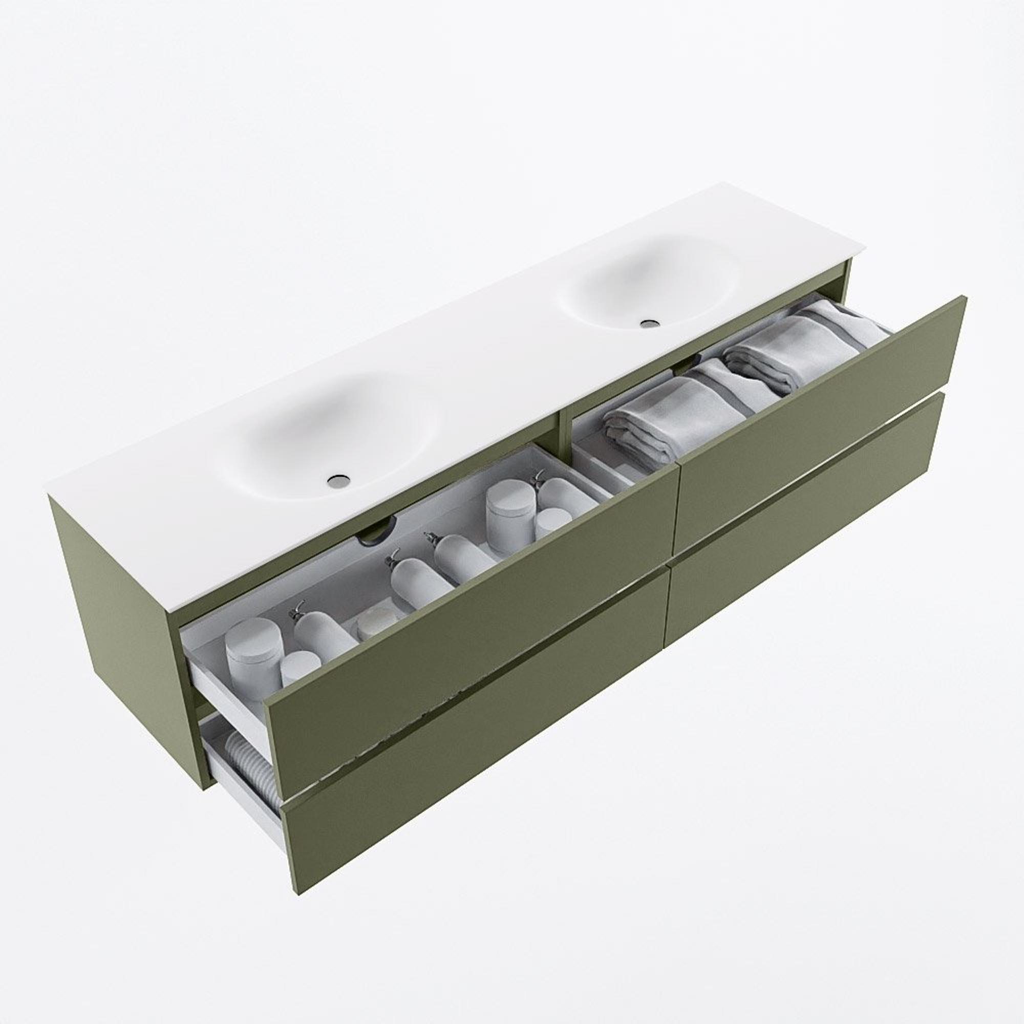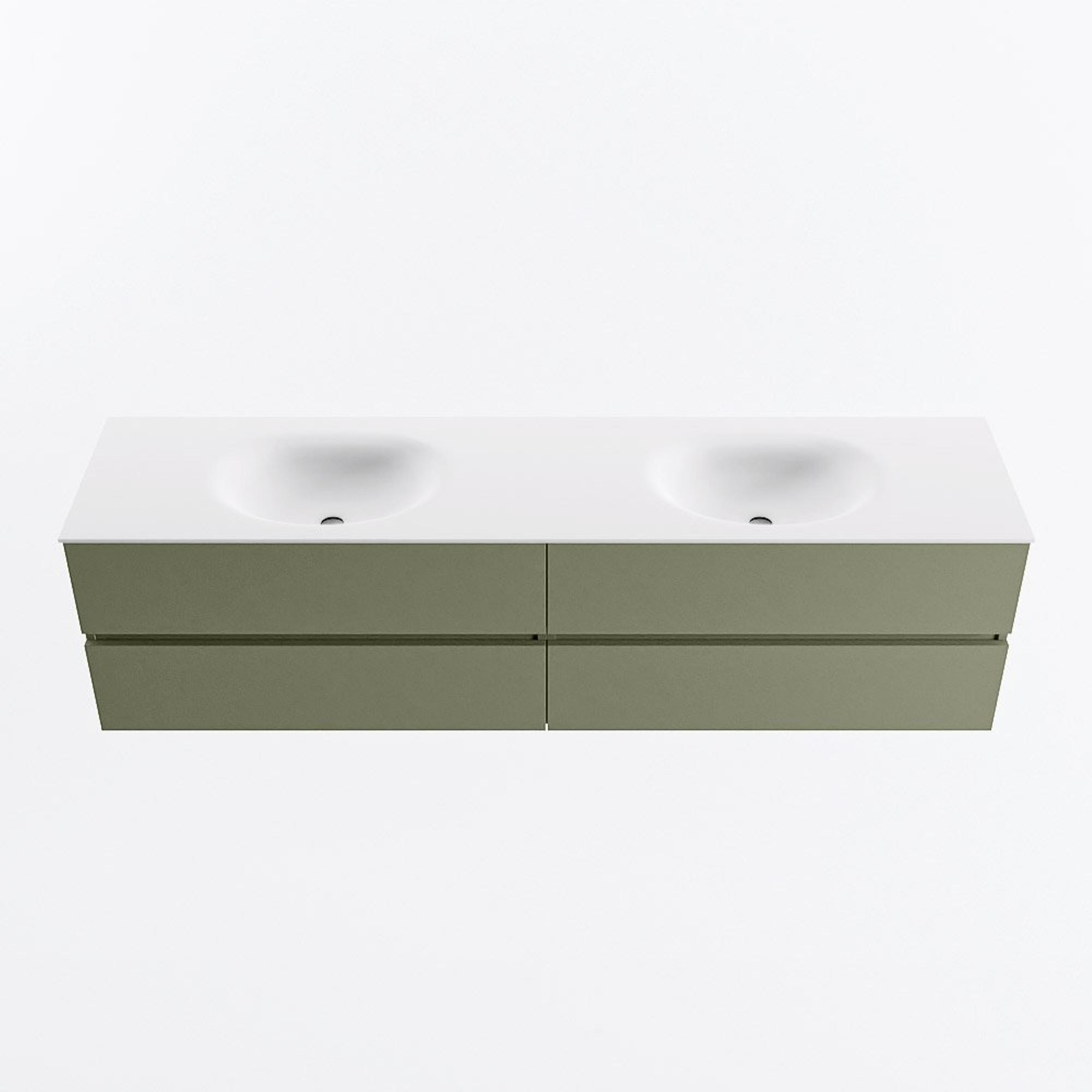 Mondiaz VICA Badkamermeubelset - 190cm - army - 4 lades - Wastafel MOON - dubbel zonder kraangat - kleur talc - XL versie 60cm hoog