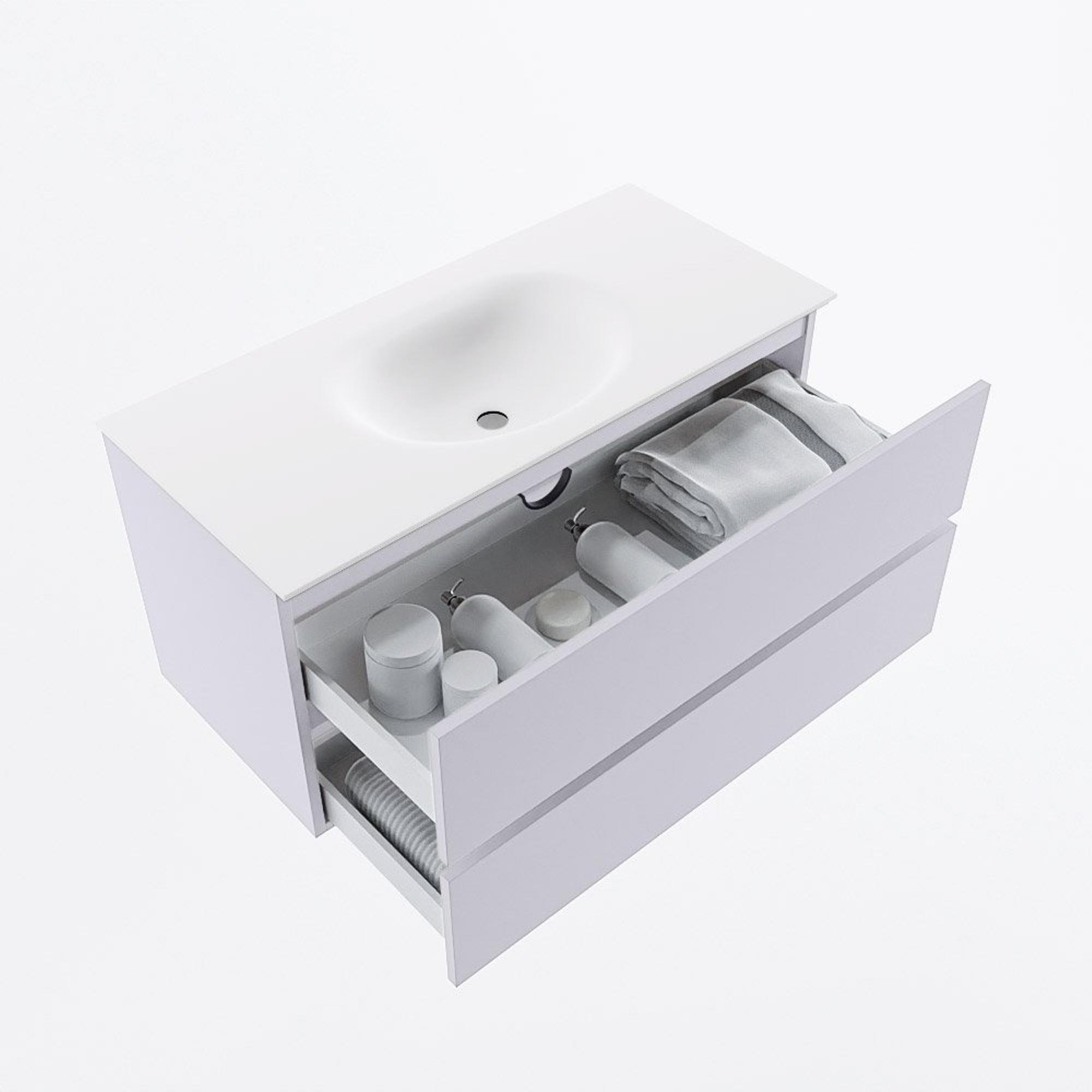 Mondiaz VICA Badkamermeubelset - 100cm - cale - 2 lades - Wastafel MOON - links - 1 kraangat - kleur talc - XL versie 60cm hoog