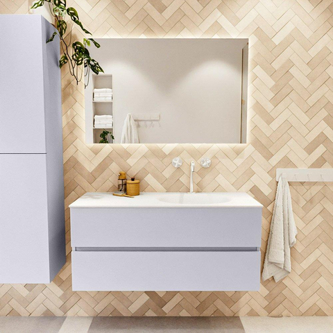 Mondiaz VICA Badkamermeubelset - 110cm - cale - 2 lades - Wastafel MOON - rechts - zonder kraangat - kleur talc - XL versie 60cm hoog