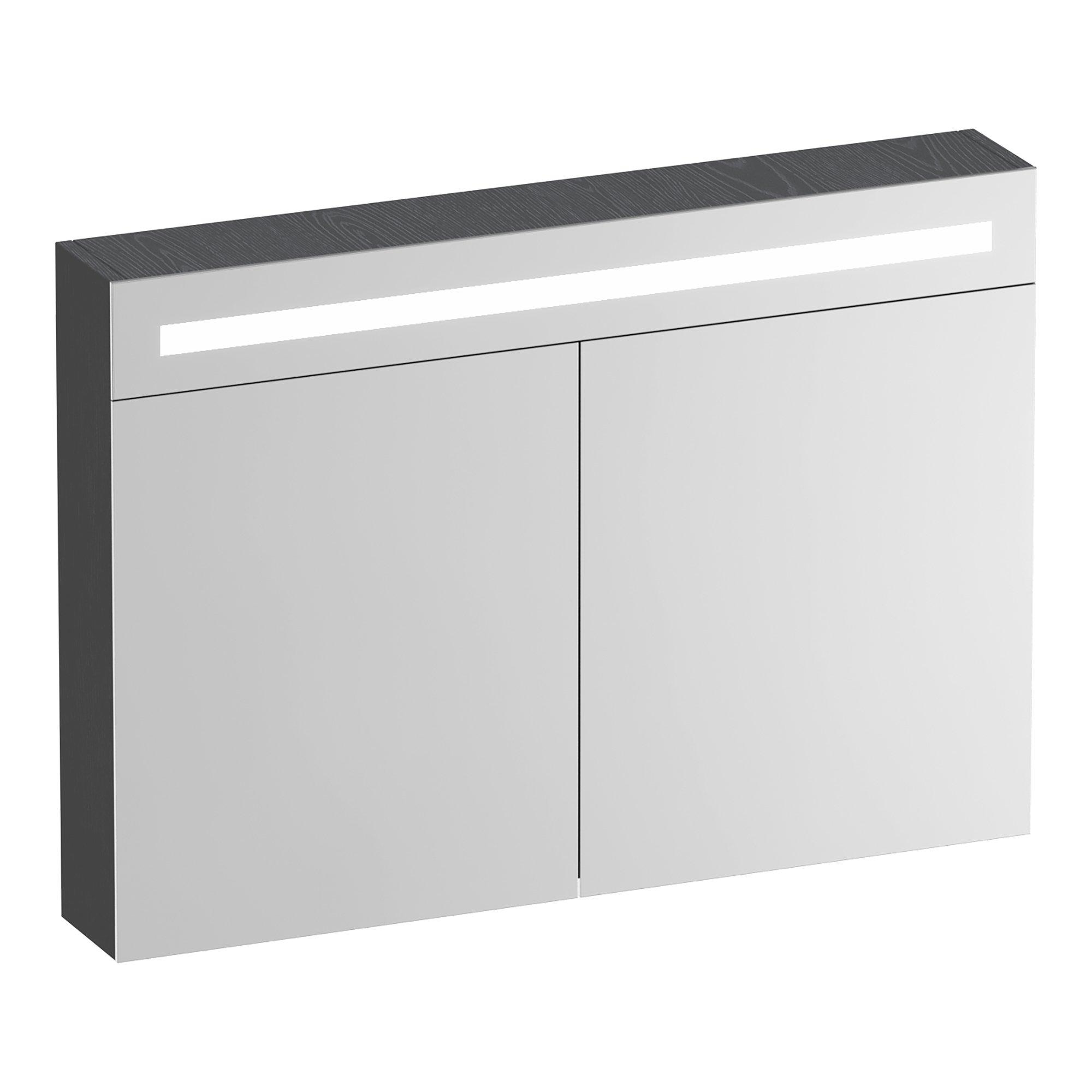 Dimensions : 100x70x15cm, Éclairage pour une ambiance chaleureuse, 2 portes miroir doubles pour plus de commodité, Finition Timber Grey pour un aspect moderne