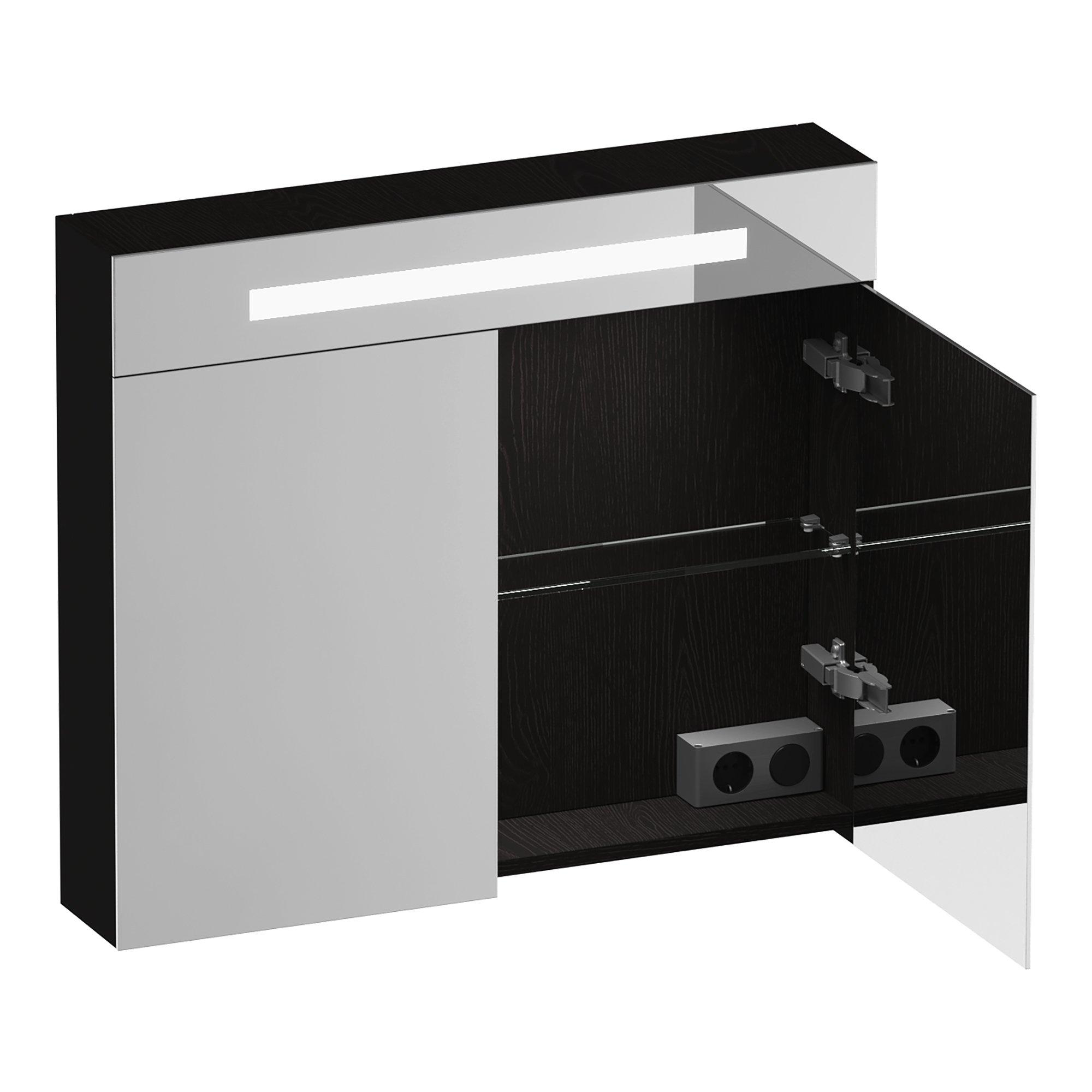 BRAUER Promise Deluxe armoire de toilette - 80x70x15cm - avec éclairage - 2 portes miroir double face - Bois Noir