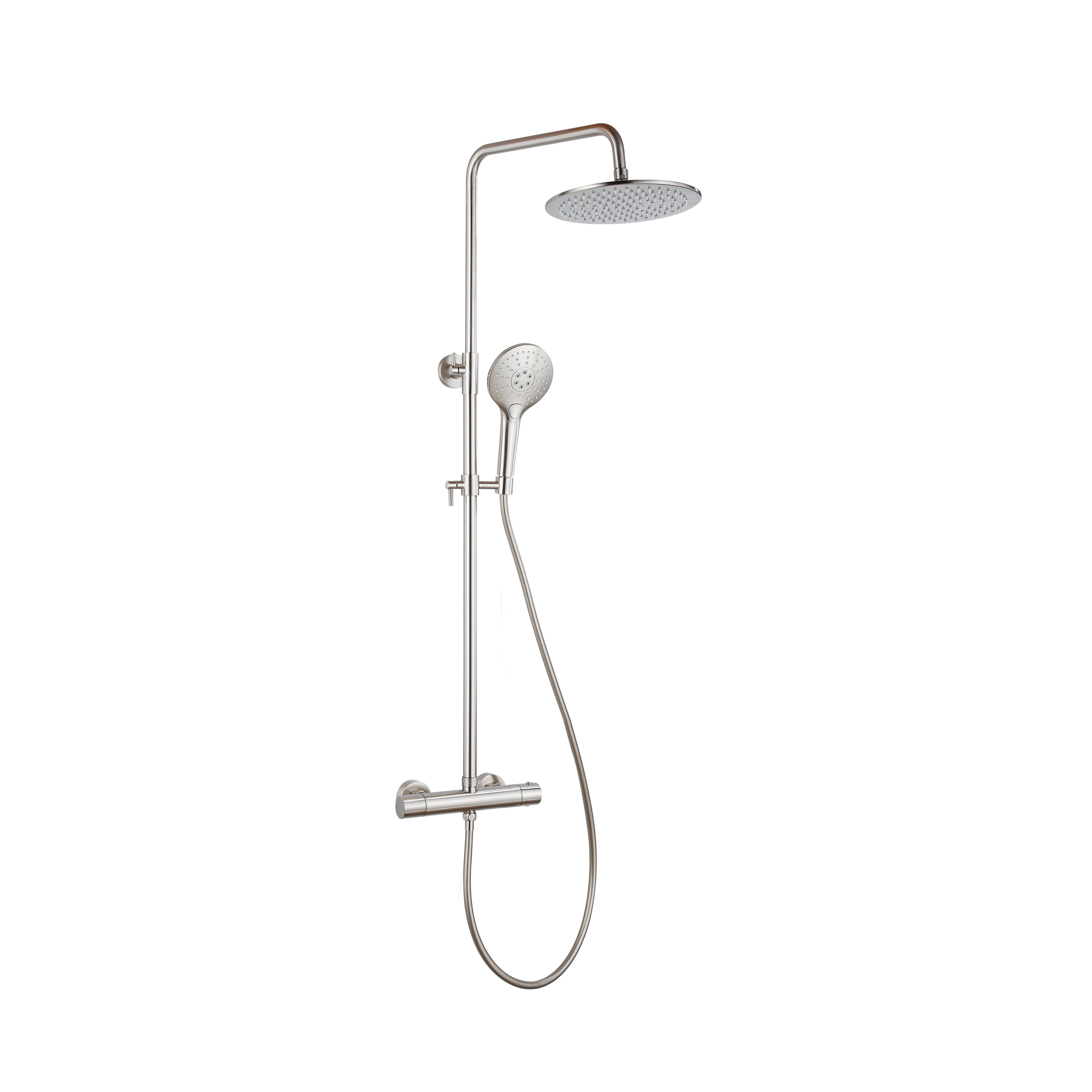 Fortifura Calvi Ensemble de douche de tête - thermostatique - pomme de douche 30 cm - flexible lisse - douchette ronde - Acier inoxydable brossé PVD