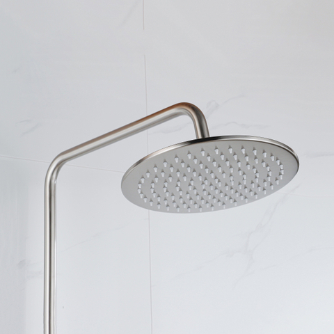 Ce ensemble de douche de tête respire le style et la classe. La combinaison du flexible lisse et de la douchette ronde crée un ensemble harmonieux qui donne à la salle de bains une apparence raffinée. Le matériau en acier inoxydable brossé PVD n'est pas seulement élégant, mais également facile à entretenir. Avec cet ensemble, vous ajoutez une touche de luxe à votre salle de bains, transformant chaque douche en un moment de détente et de plaisir.