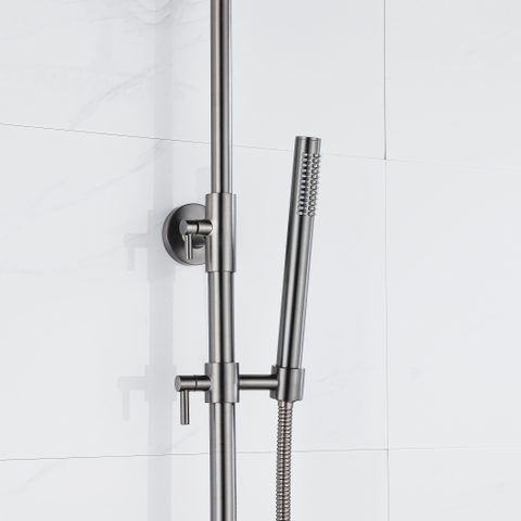 L'ensemble de douche pluie thermostatique Fortifura Calvi n'est pas seulement fonctionnel, mais aussi conçu avec style. La finition PVD gunmetal donne à l'ensemble un aspect moderne et élégant qui s'intègre parfaitement dans une décoration de salle de bain contemporaine. Les lignes épurées et le design minimaliste de la douche principale et de la douchette à main assurent un design intemporel qui durera des années. Avec cet ensemble, vous ajoutez non seulement du style, mais aussi de la classe à votre salle de bain.