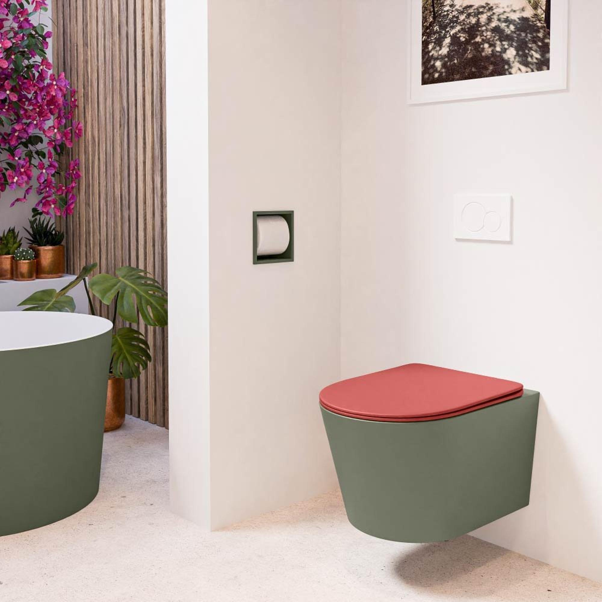 MONDIAZ LAVIE WC suspendu - 36x53cm - sans bride - Fire (rouge) - softclose - quick-release - abattant WC - Army (vert)
