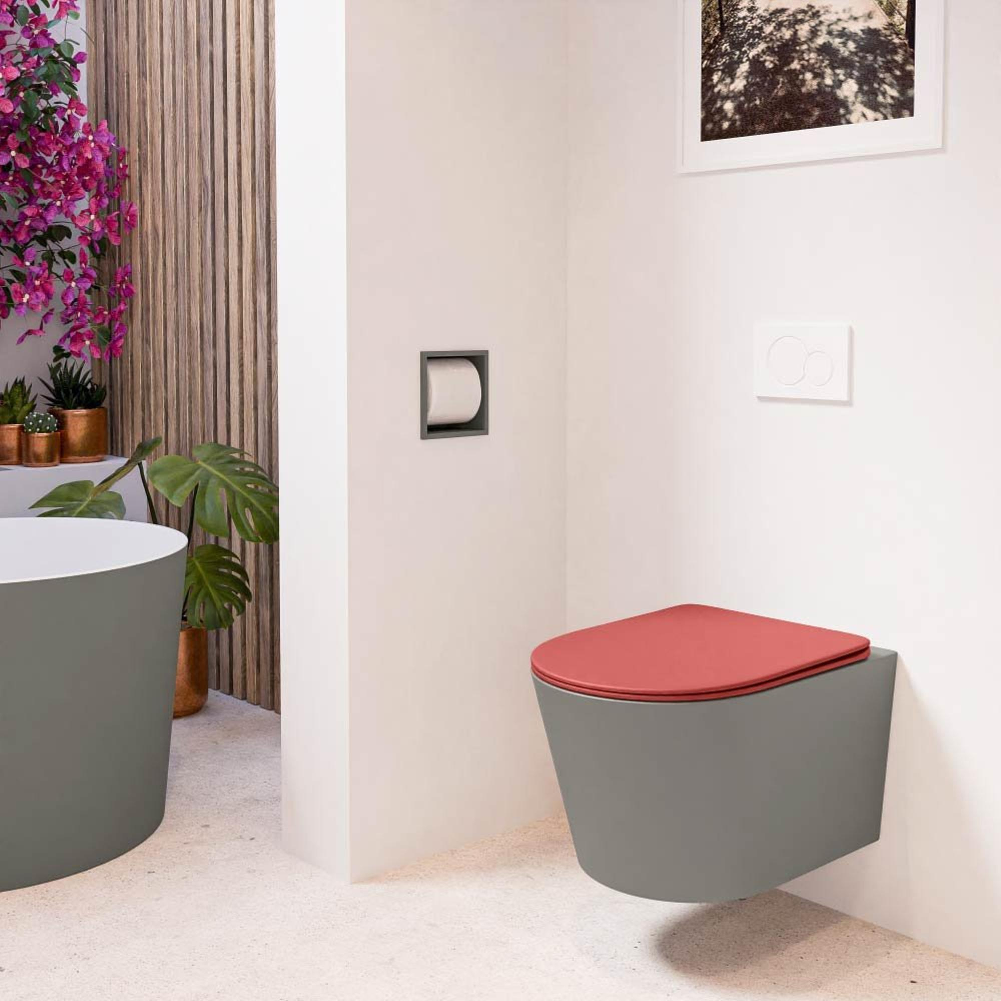 MONDIAZ LAVIE WC suspendu - 36x53cm - sans bride - Fire (rouge) - softclose - quick-release - abattant WC - Smoke (gris)