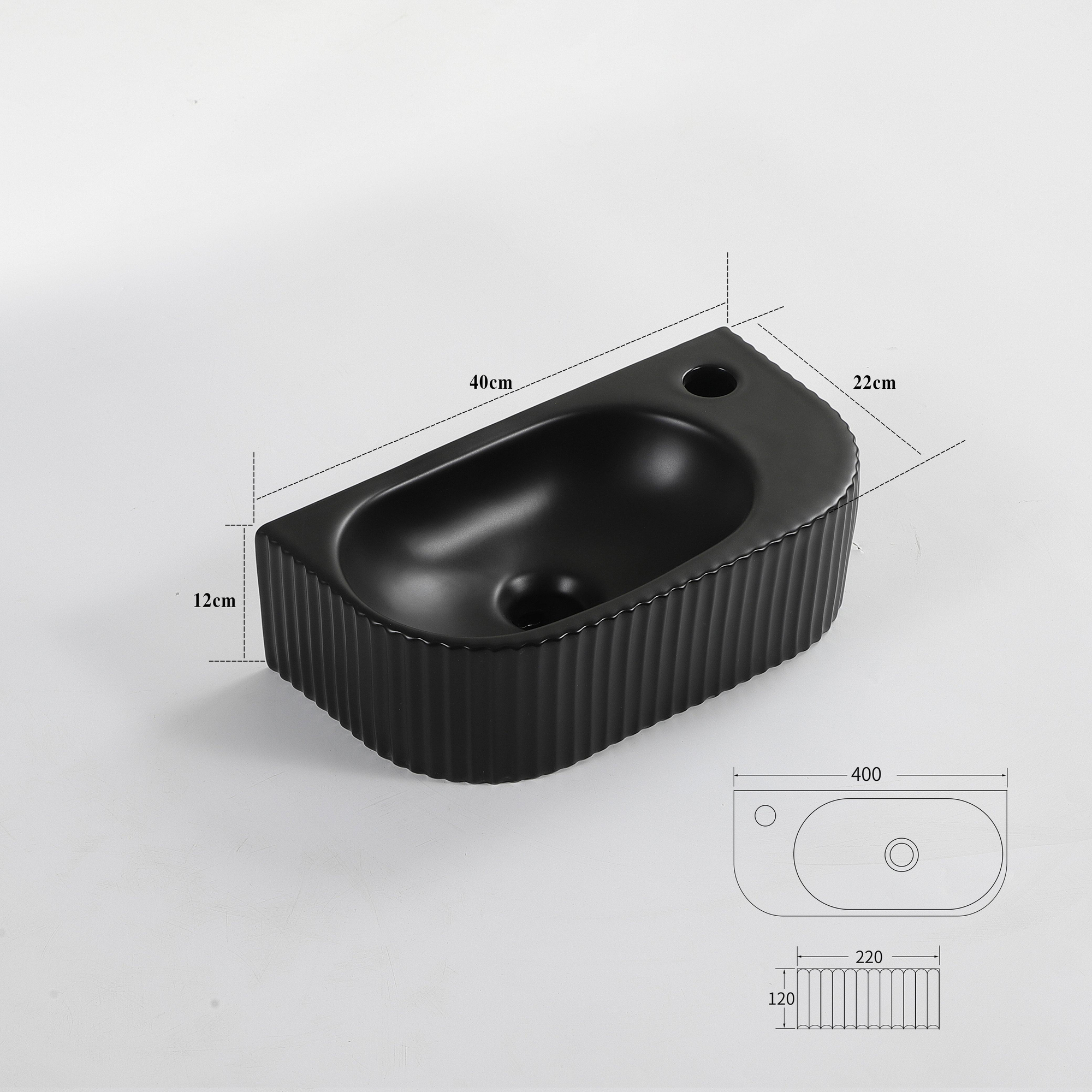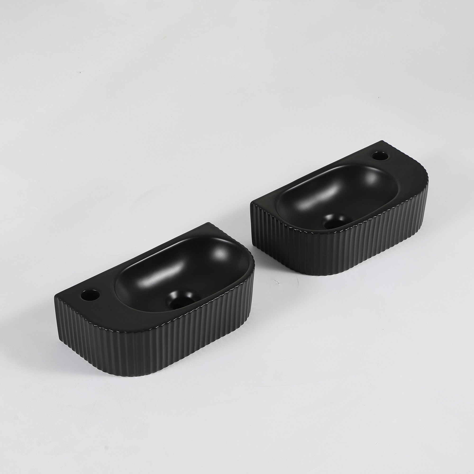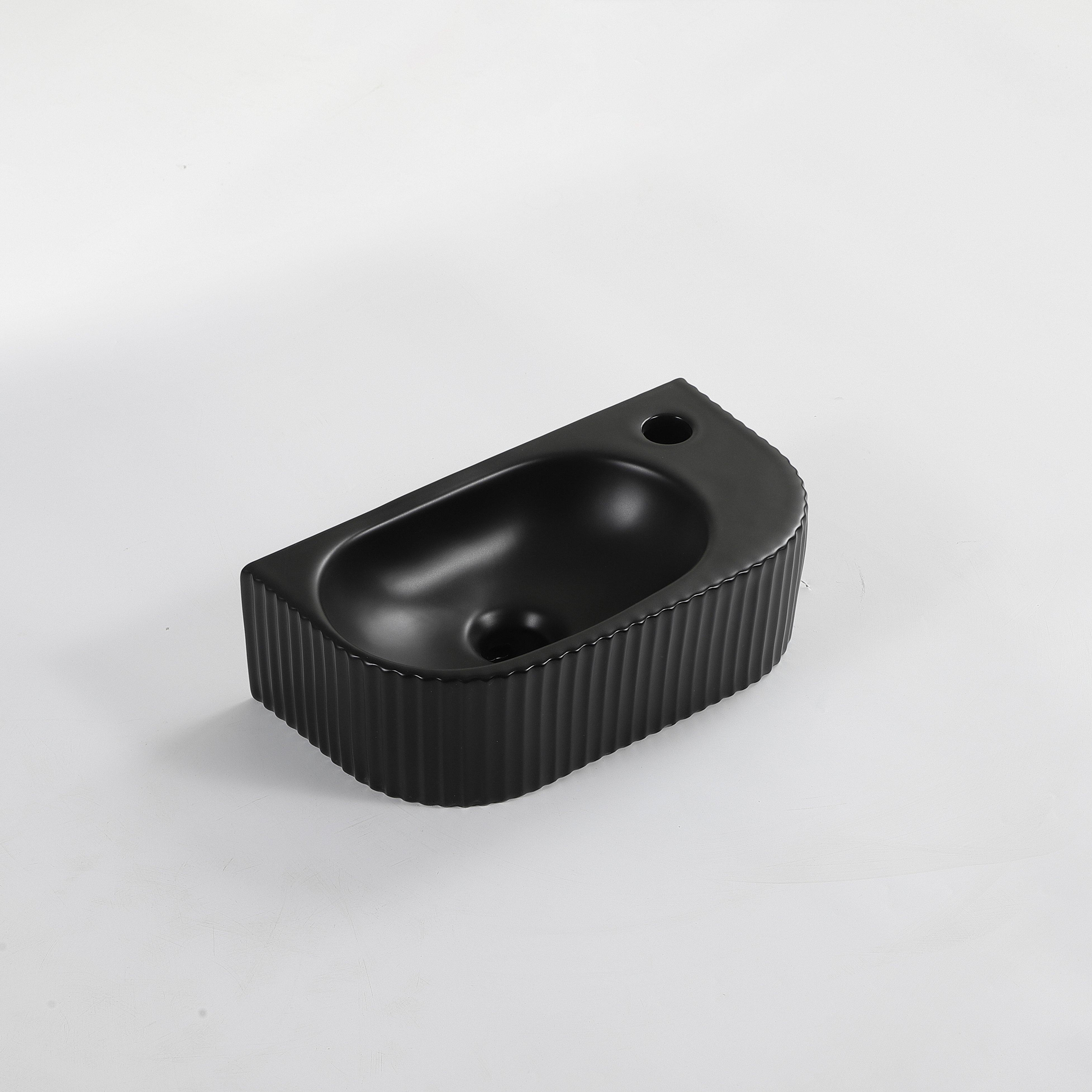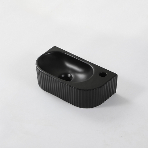 QeramiQ Blend Lavabo pour WC - 40x22x12cm - Droite - Strié - semi-circulaire - 1 trou de robinet - Céramique - Noir mat