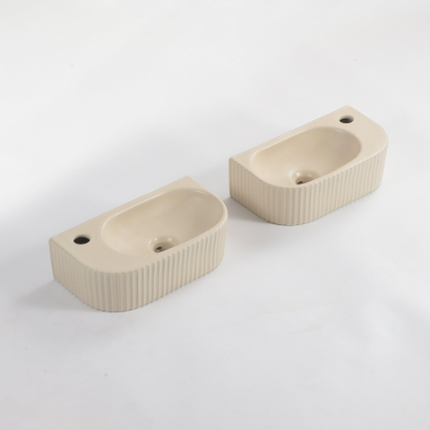 QeramiQ Blend Lave-mains - 40x22x12cm - Droit - Strié - demi-rond - 1 trou de robinet - Céramique - Beige mat