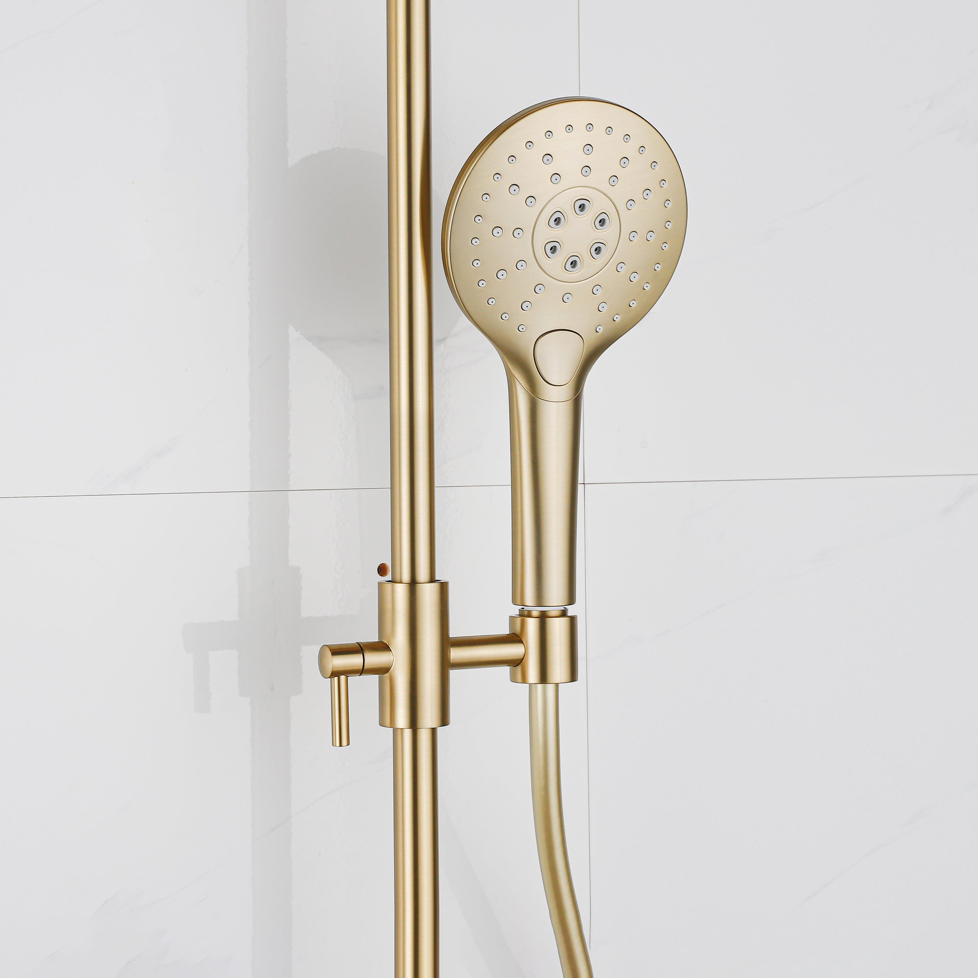- Ensemble complet Fortifura Calvi Ensemble barre de douche - raccord mural intégré - flexible de douche métal - pommeau de douche rond - Laiton brossé PVD (Or) pour une douche haut de gamme