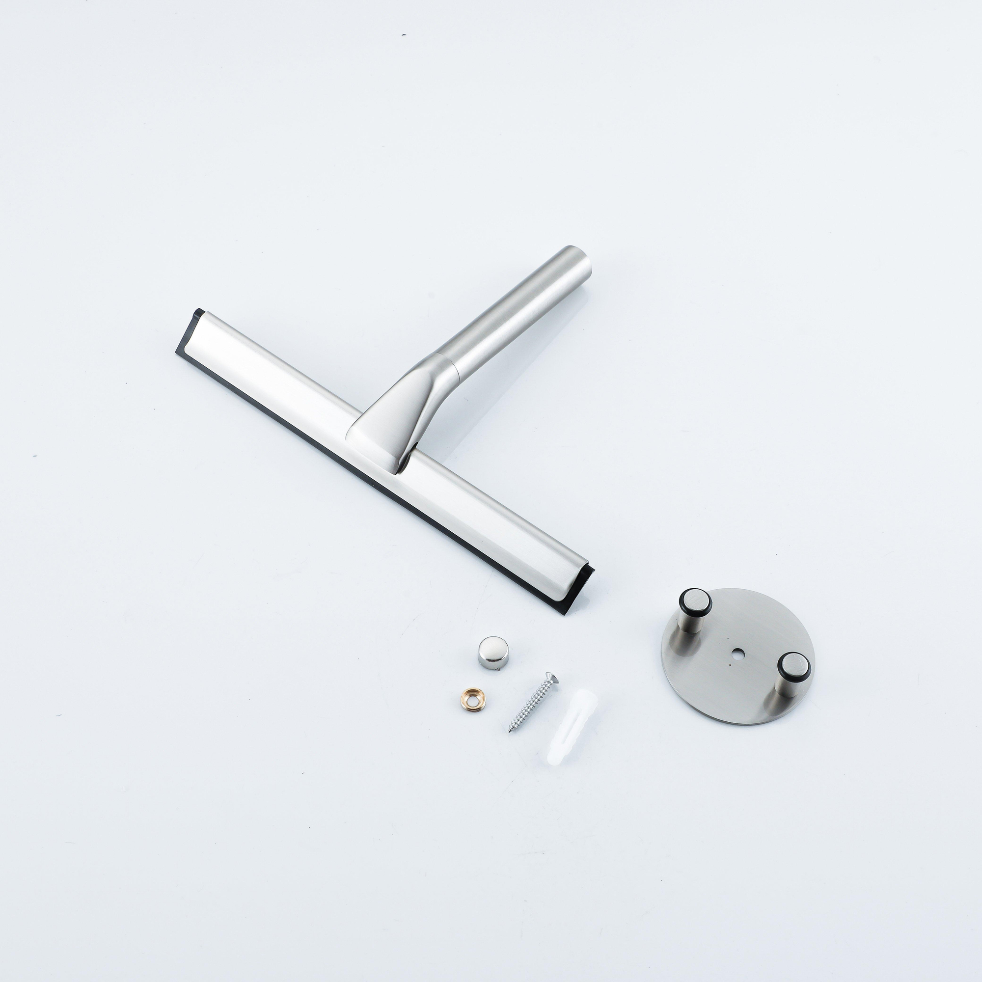Ce support pour lame à vitre n'est pas seulement conçu pour ranger votre lame à vitre, mais offre également de l'espace pour d'autres accessoires de salle de bains tels que des rasoirs, des brosses à dents ou de petits flacons. La finition en acier inoxydable brossé assure durabilité et entretien facile, faisant de ce support une solution pratique et polyvalente pour votre salle de bains.