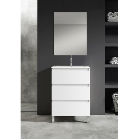 Saniclass Chaci PLUS Meuble bas de salle de bains - 60x86x46cm - 3 tiroirs - Poignée intégrée - MDF - blanc mat