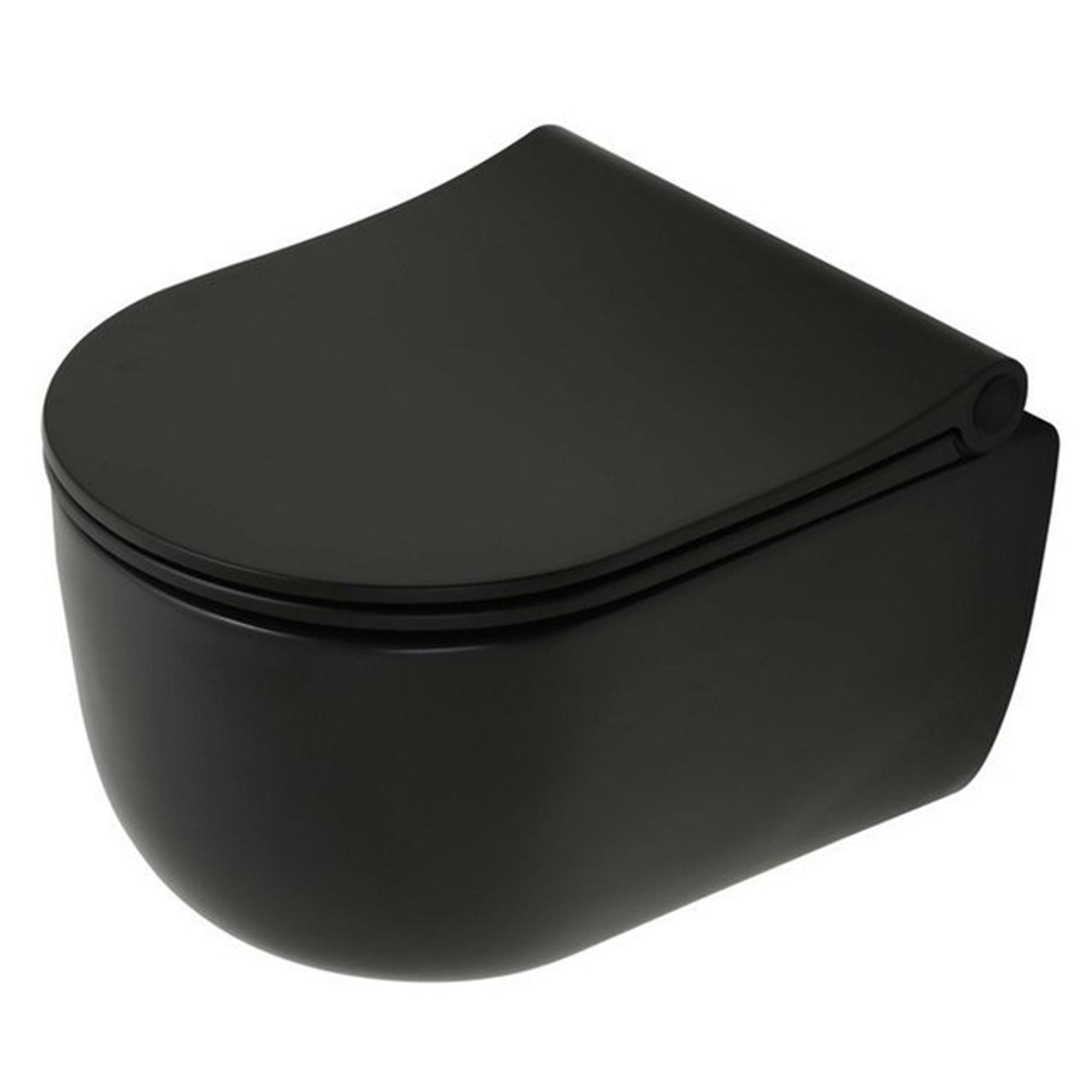 La cuvette suspendue est compacte (36 cm de large, 45,5 cm de profondeur, 33,2 cm de hauteur) et se monte flottante, ce qui libère le sol et donne immédiatement à vos toilettes une impression de grandeur et de légèreté. Grâce à la forme en D, l’abattant s’ajuste parfaitement à la forme de la céramique, ce qui est non seulement esthétique mais aussi confortable à l’assise. Le design sans bride combiné au rinçage tourbillon garantit l’absence de rebords difficiles où la saleté peut s’accumuler, tout en assurant un rinçage complet de l’intérieur de la cuvette. C’est plus hygiénique et cela vous fait gagner du temps lors du nettoyage. La couleur noire mate de la cuvette elle-même crée un effet audacieux digne d’un hôtel et fait de vos toilettes un véritable point de mire.