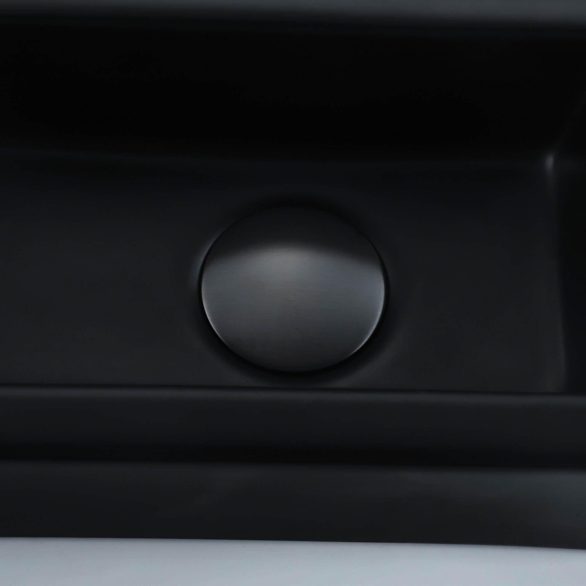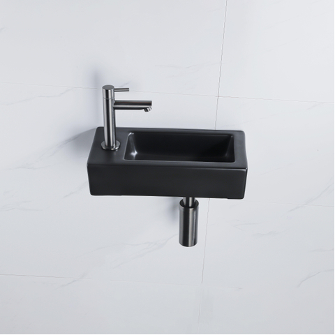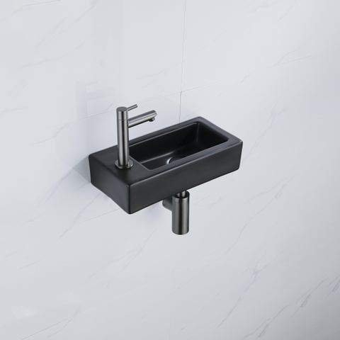 QeramiQ Lave-mains Kit lave-mains - 37.5x18.5x9cm - céramique - trou de robinet gauche - robinet lave-mains gunmetal - bonde de vidage - siphon abaissé - Mat Noir