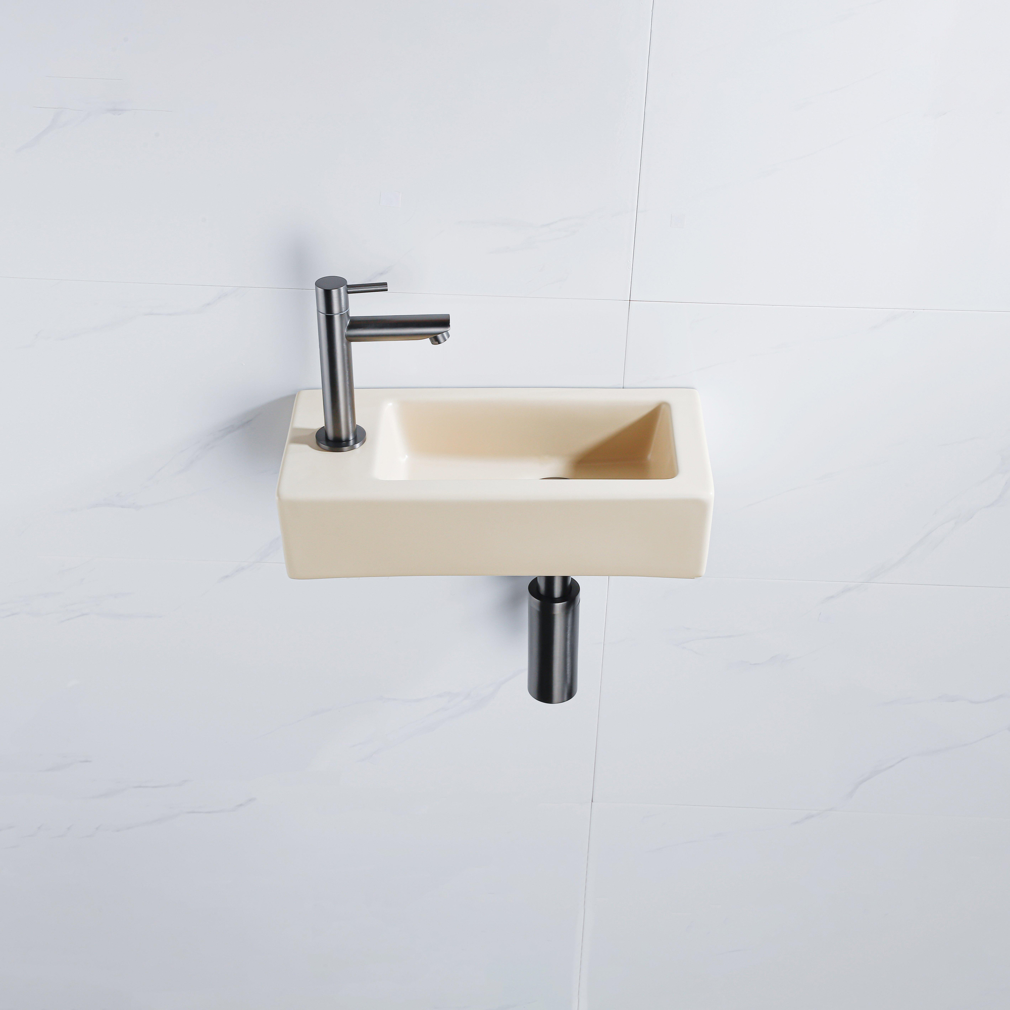 QeramiQ Lave-mains Kit lave-mains - 37.5x18.5x9cm - céramique - trou de robinet gauche - robinet lave-mains gunmetal - bonde de vidage - siphon abaissé - Mat Beige