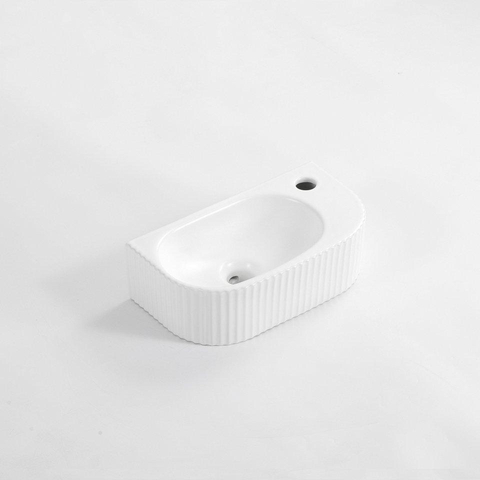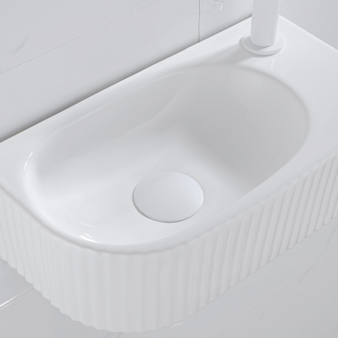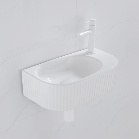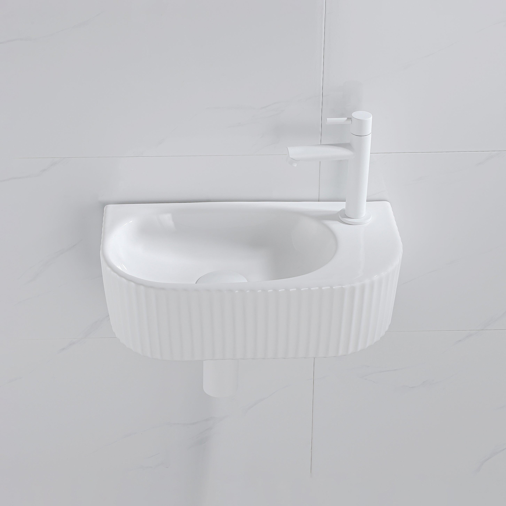 QeramiQ Fuente Ensemble de Lavabo - 40x21.5x12cm - droite - strié - demi-rond - 1 trou de robinet - céramique - ensemble de robinet blanc mat - bouchon de vidange - siphon réduit - blanc mat