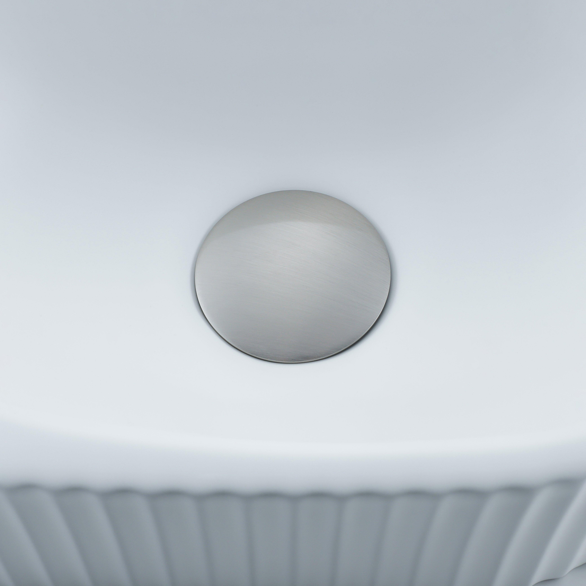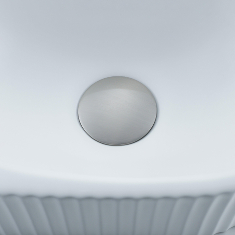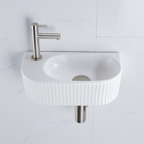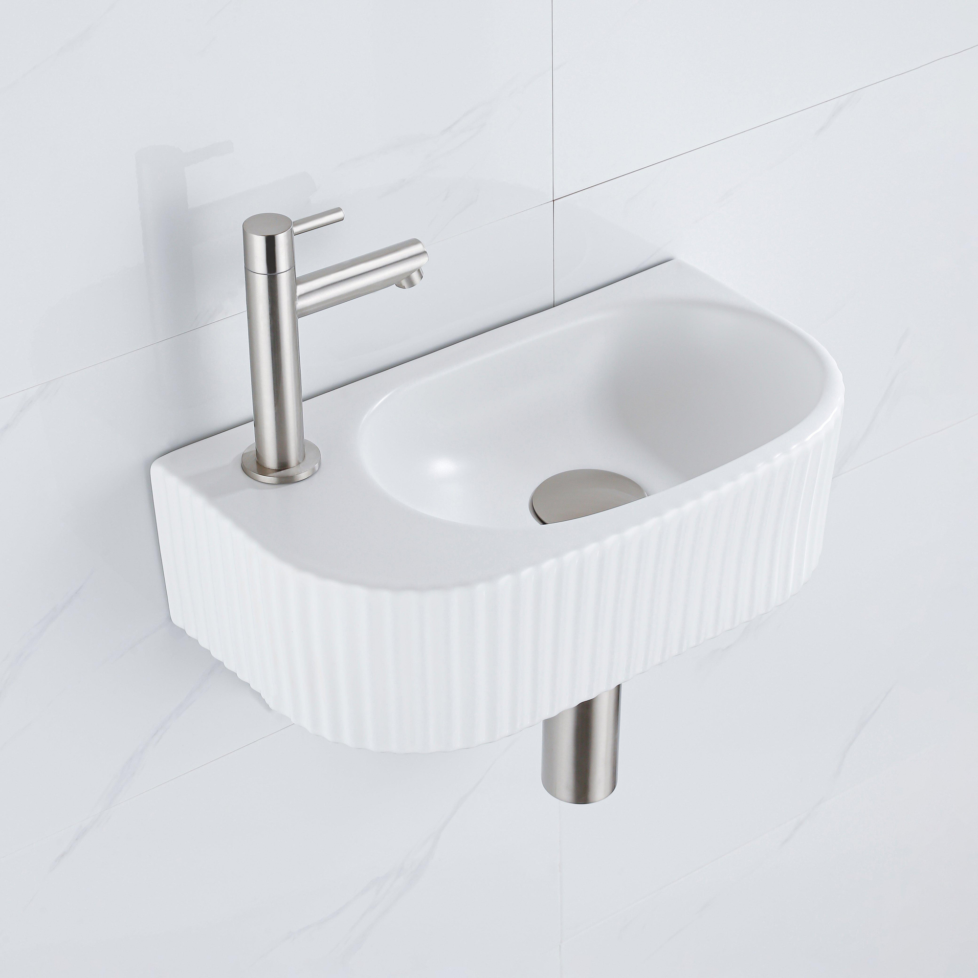 QeramiQ Fuente Ensemble de Lavabo - 40x21.5x12cm - gauche - strié - demi-rond - 1 trou de robinet - céramique - ensemble de robinet en acier inoxydable brossé - bouchon de vidange - siphon réduit - blanc mat