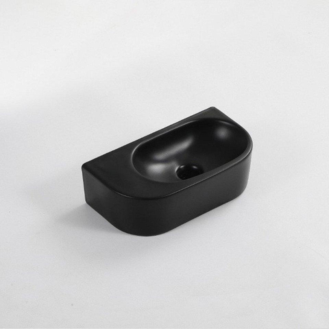 QeramiQ Fuente Ensemble de Lavabo - 40x21.5x12cm - lisse - demi-rond - céramique - ensemble de robinet blanc mat - bouchon de vidange - siphon abaissé - noir mat