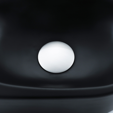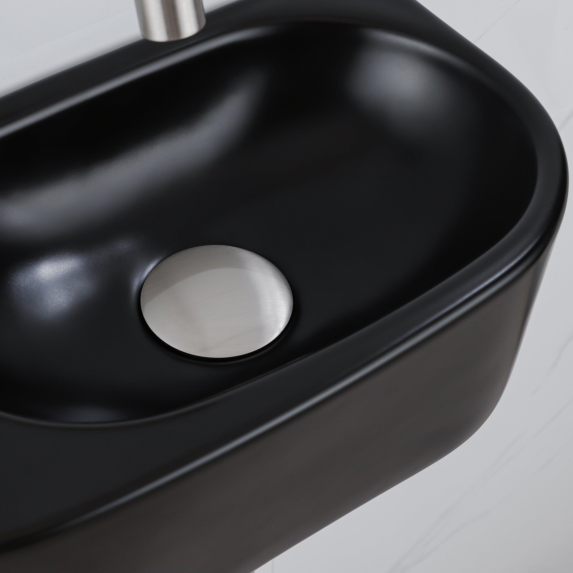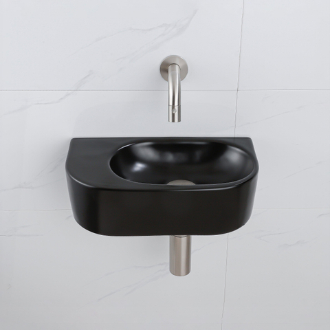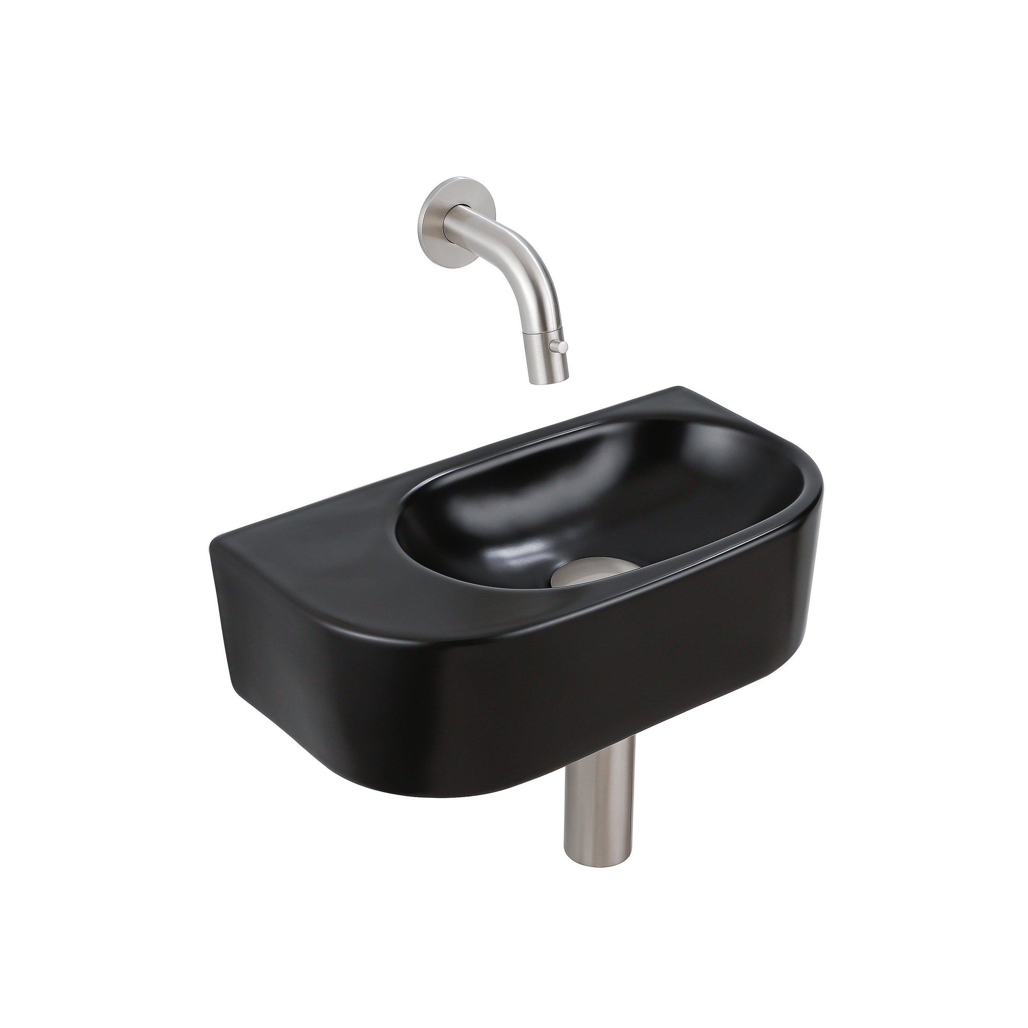 QeramiQ Fuente Ensemble de Lavabo - 40x21.5x12cm - lisse - demi-rond - céramique - ensemble de robinet en acier inoxydable brossé - bouchon de vidange - siphon abaissé - noir mat