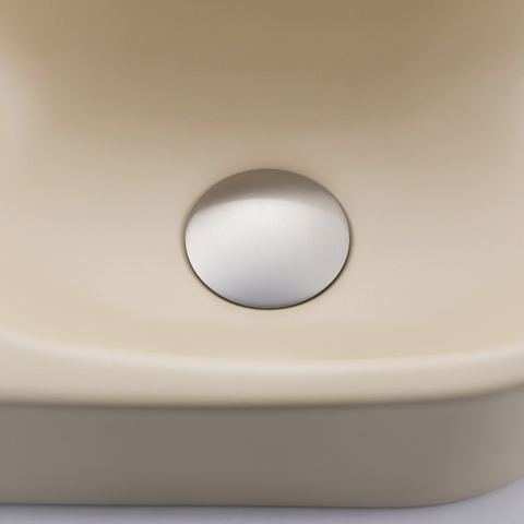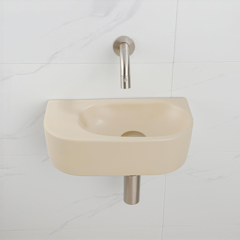 QeramiQ Fuente Ensemble de Lavabo - 40x21.5x12cm - lisse - demi-rond - sans trou pour robinet - céramique - ensemble de robinet en acier inoxydable brossé - bouchon de vidange - siphon réduit - beige