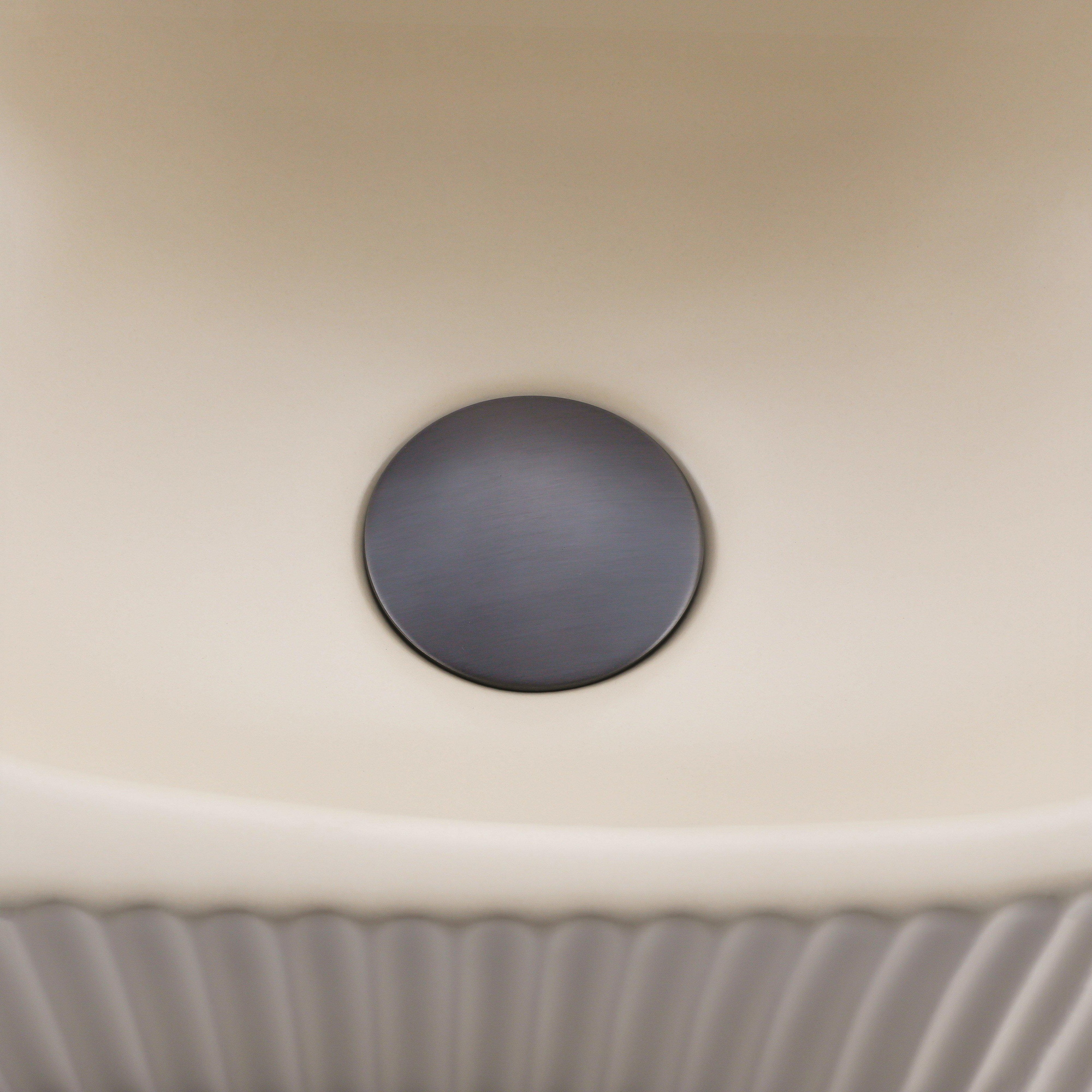 QeramiQ Fuente Ensemble de Lavabo - 40x21.5x12cm - strié - demi-rond - sans trou pour robinet - céramique - ensemble de robinet gunmetal - bouchon de vidange - siphon abaissé - beige