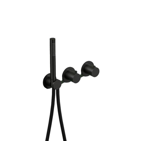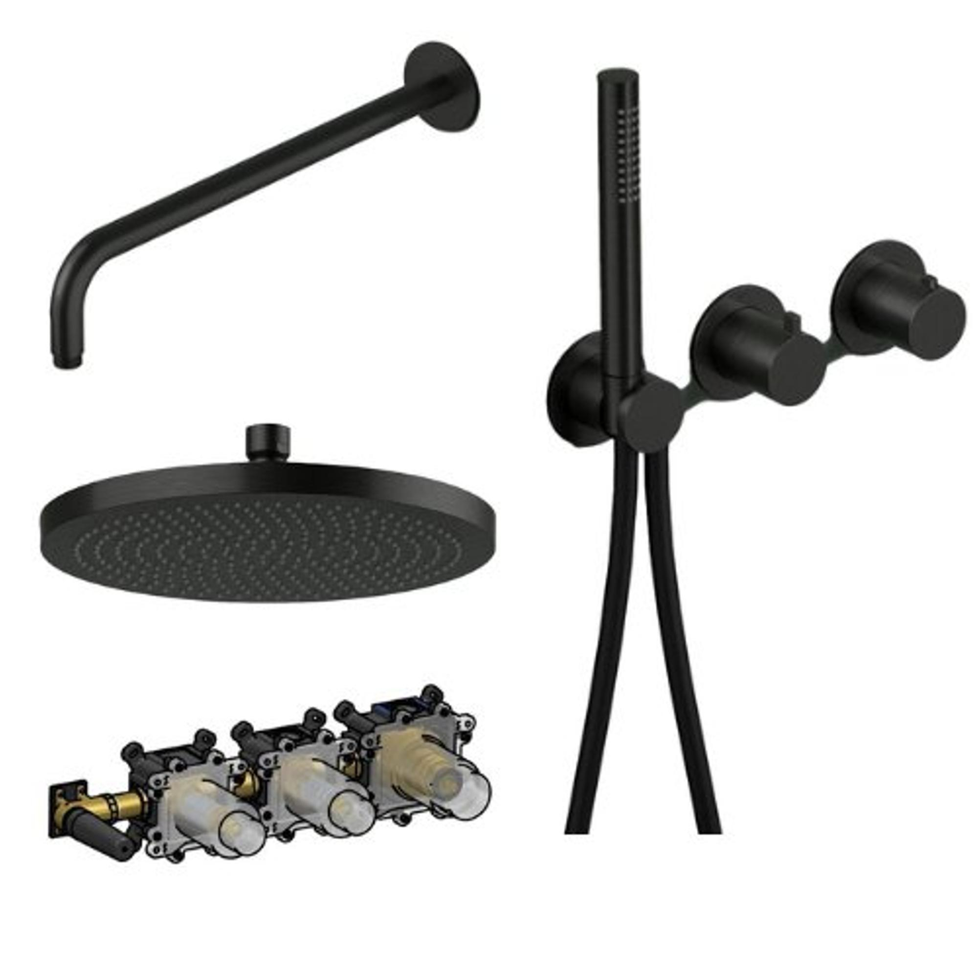 Hotbath Ace Ensemble de douche de pluie - élément encastré - 2 voies - inverseur - pomme de tête ronde - 23 cm - douchette à main - flexible de douche - noir mat PVD